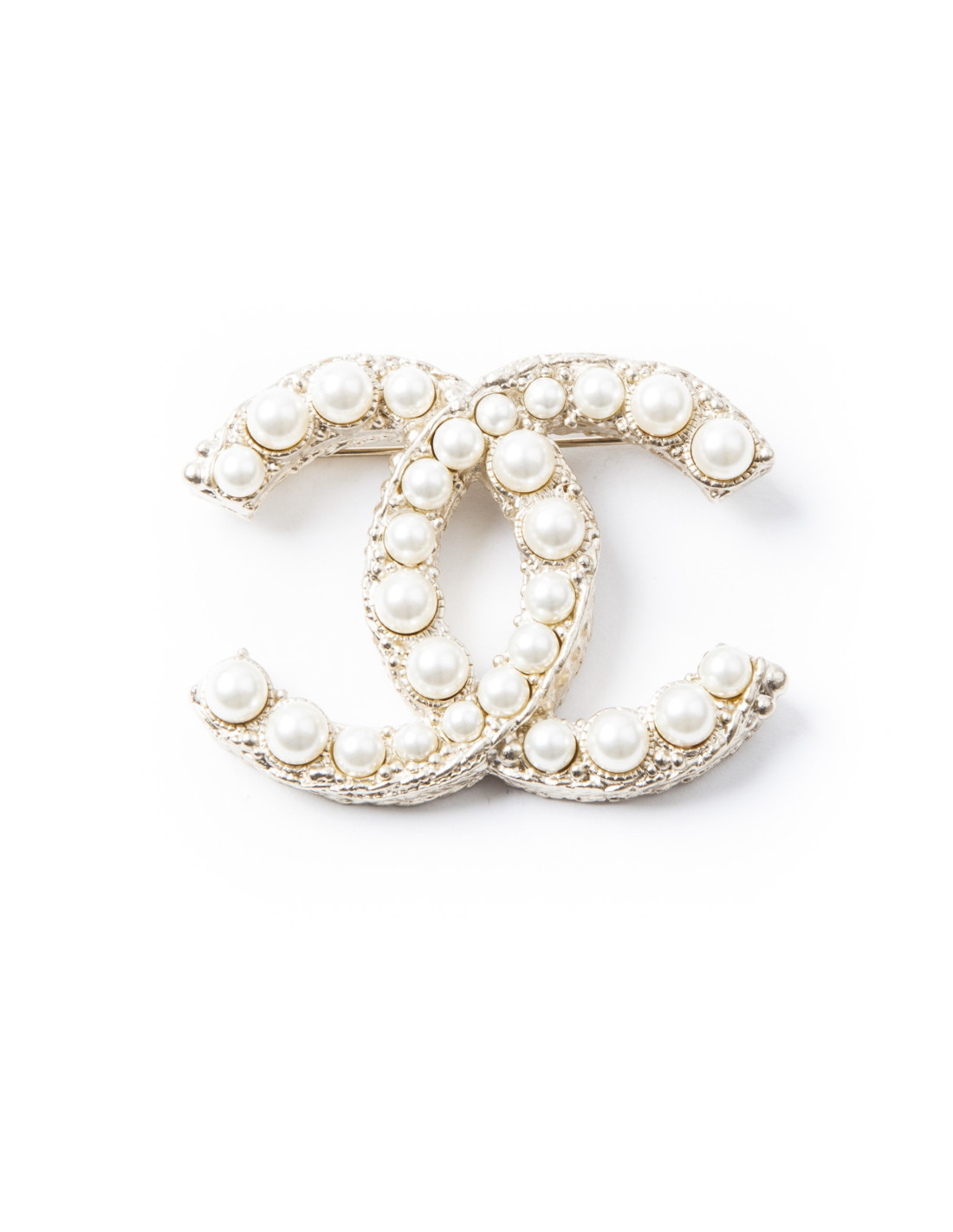 Imposante broche CHANEL CC perles nacrées et métal doré