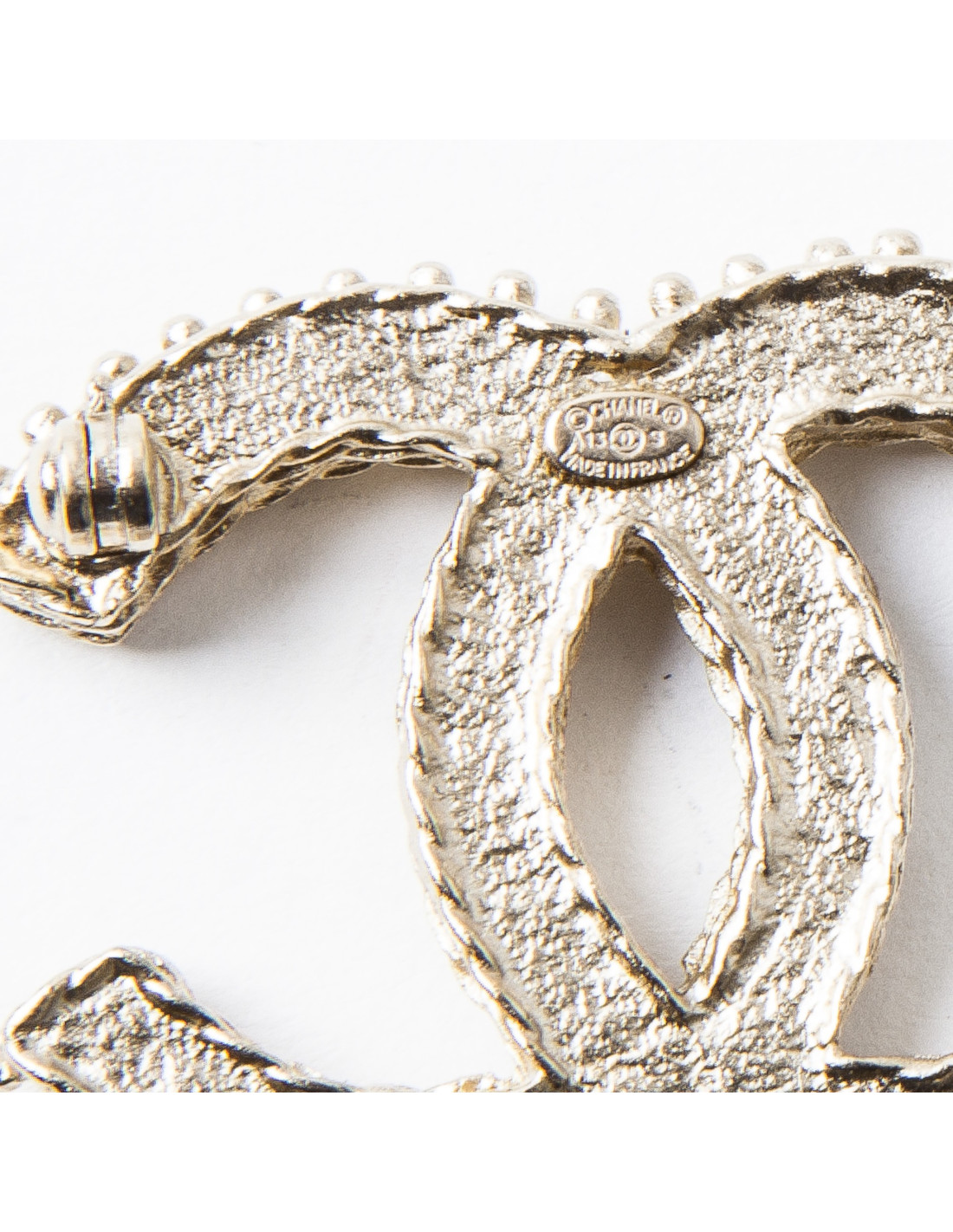 Broche dorée CHANEL double C sertie de brillants Swarovski