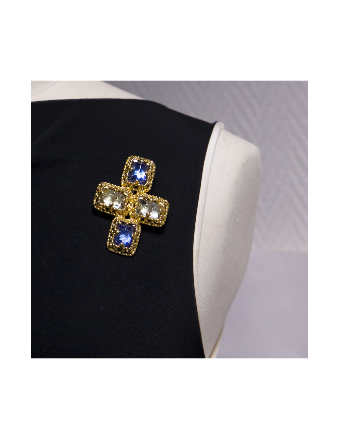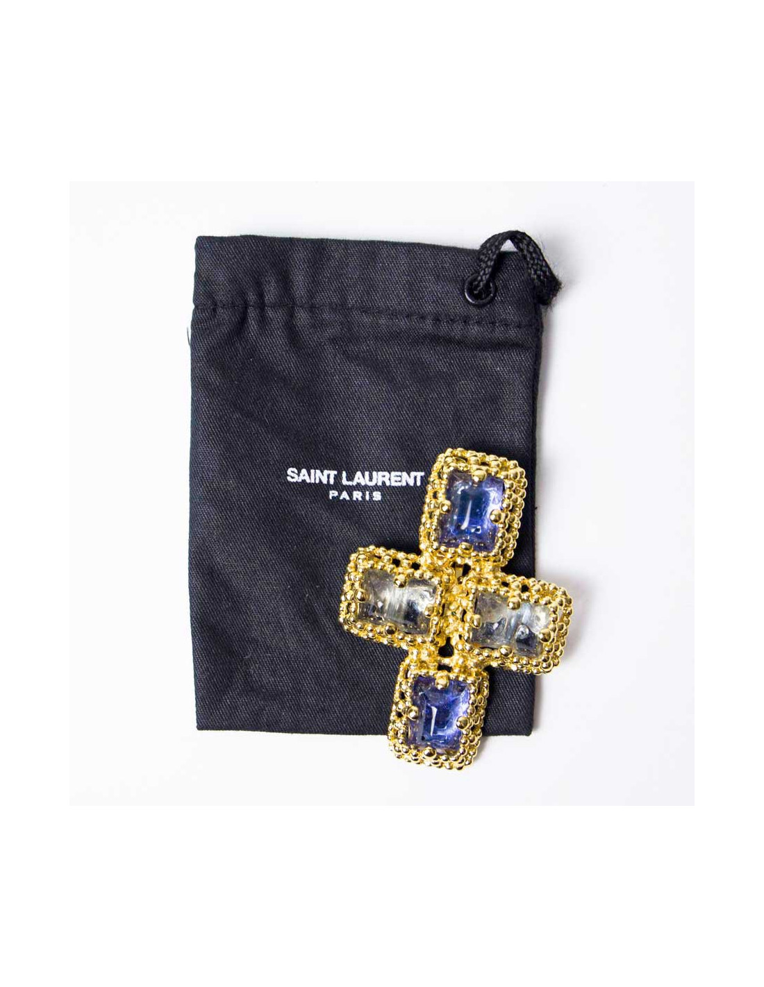 Broche Pendentif YSL Vintage cabochon saphir clair et rose pâle