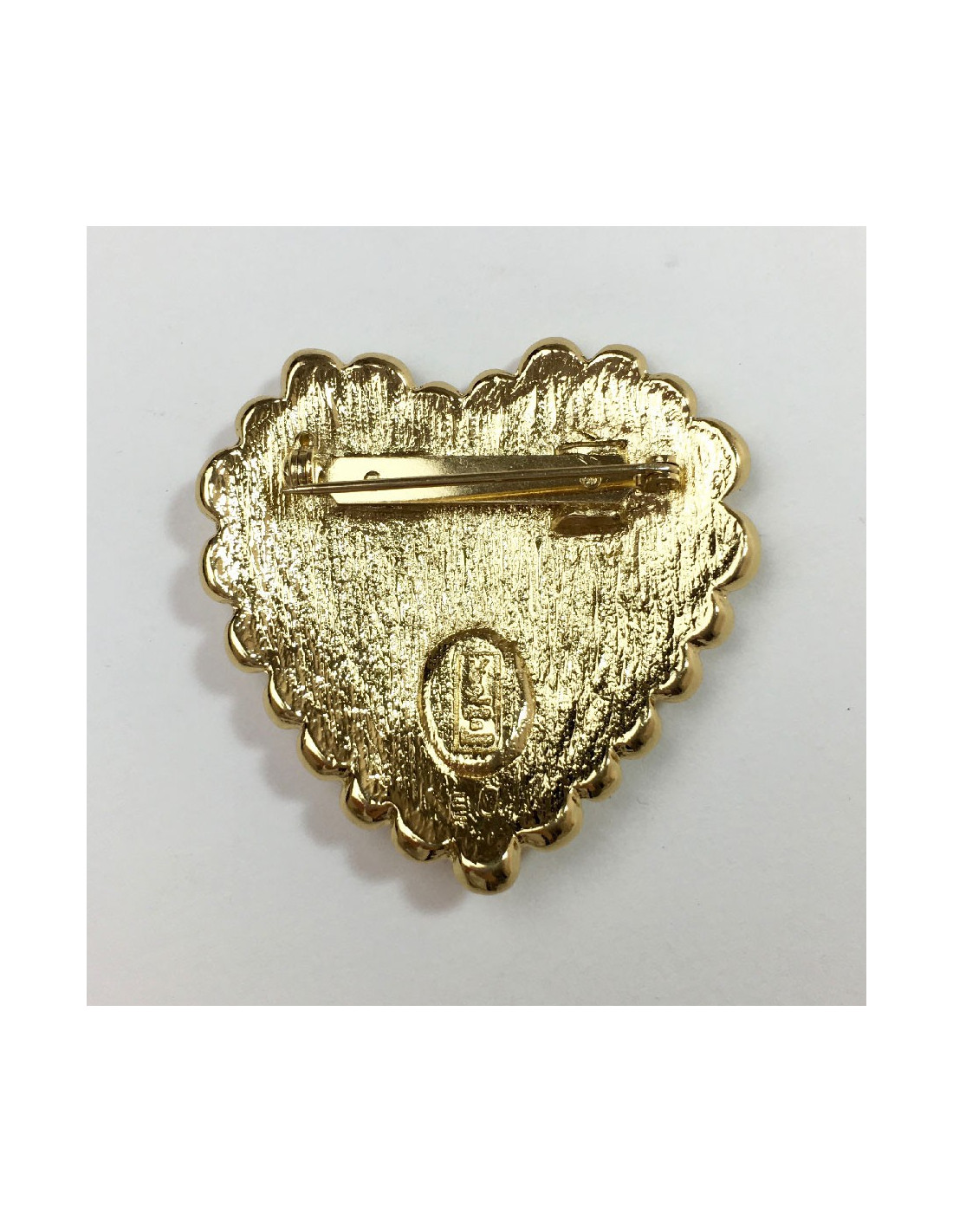 Broche vintage Yves Saint Laurent en forme de coeur en métal doré. L'accessoire de toutes les situations!