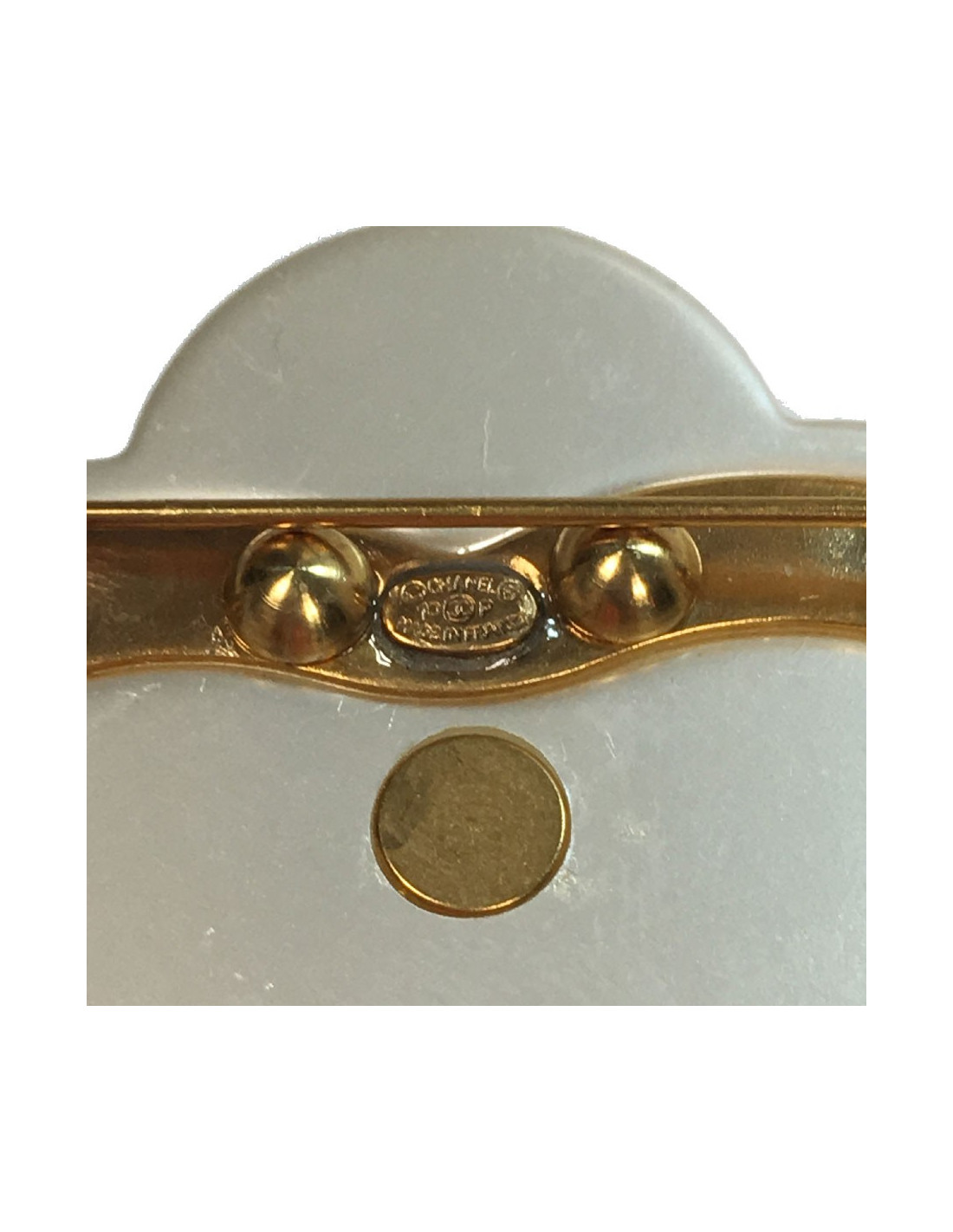 Broche Chanel camélia blanc nacré, brillants et CC