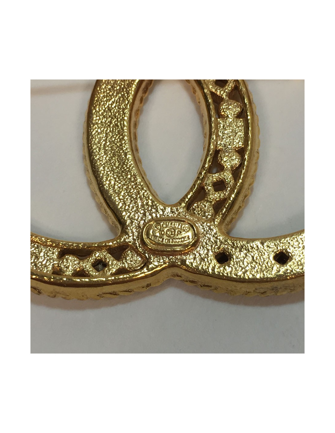 Broche CHANEL CC en métal dorée et strass