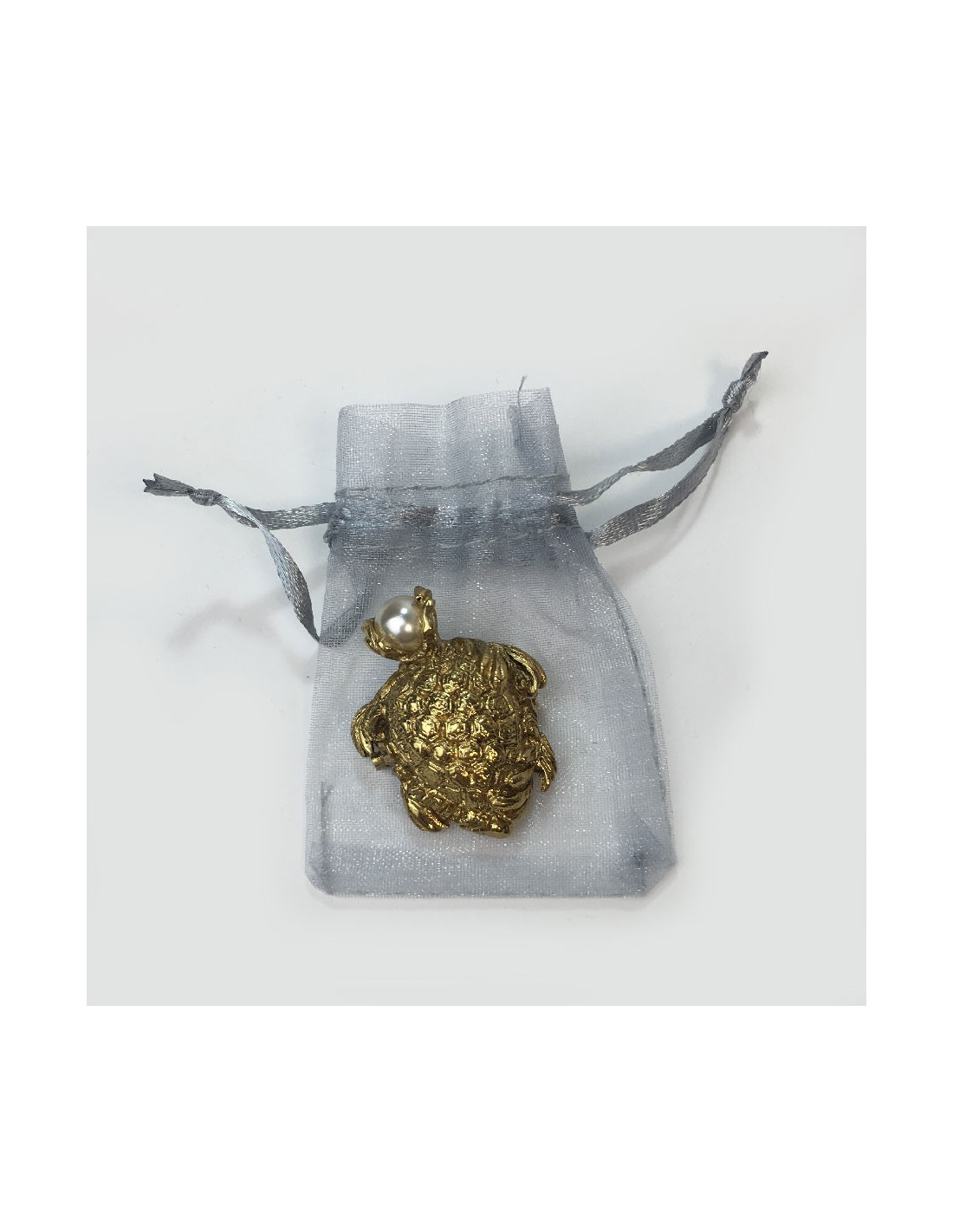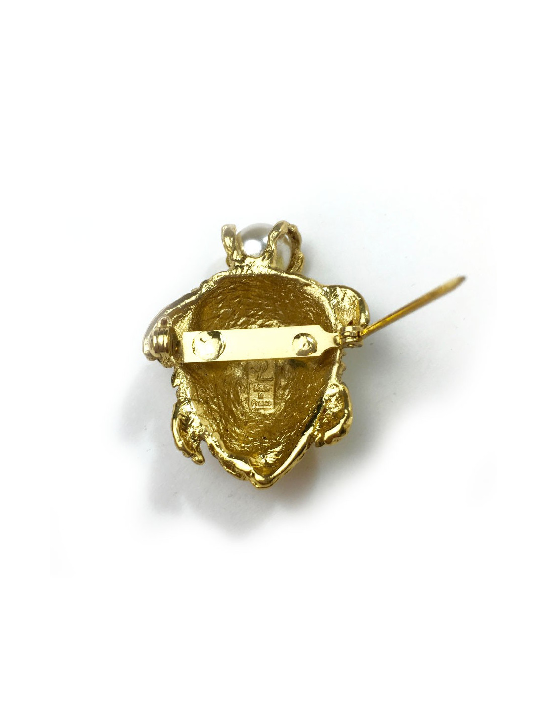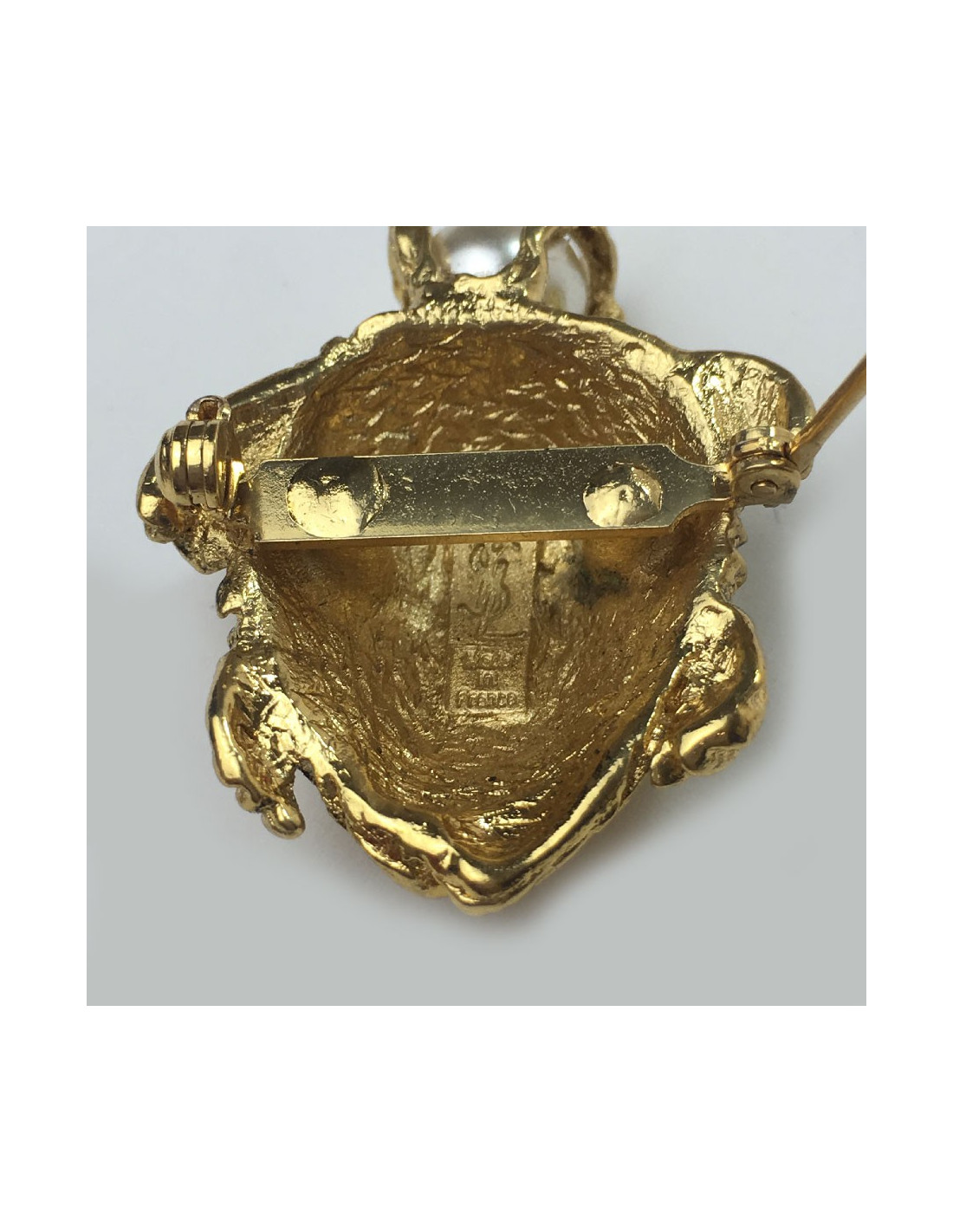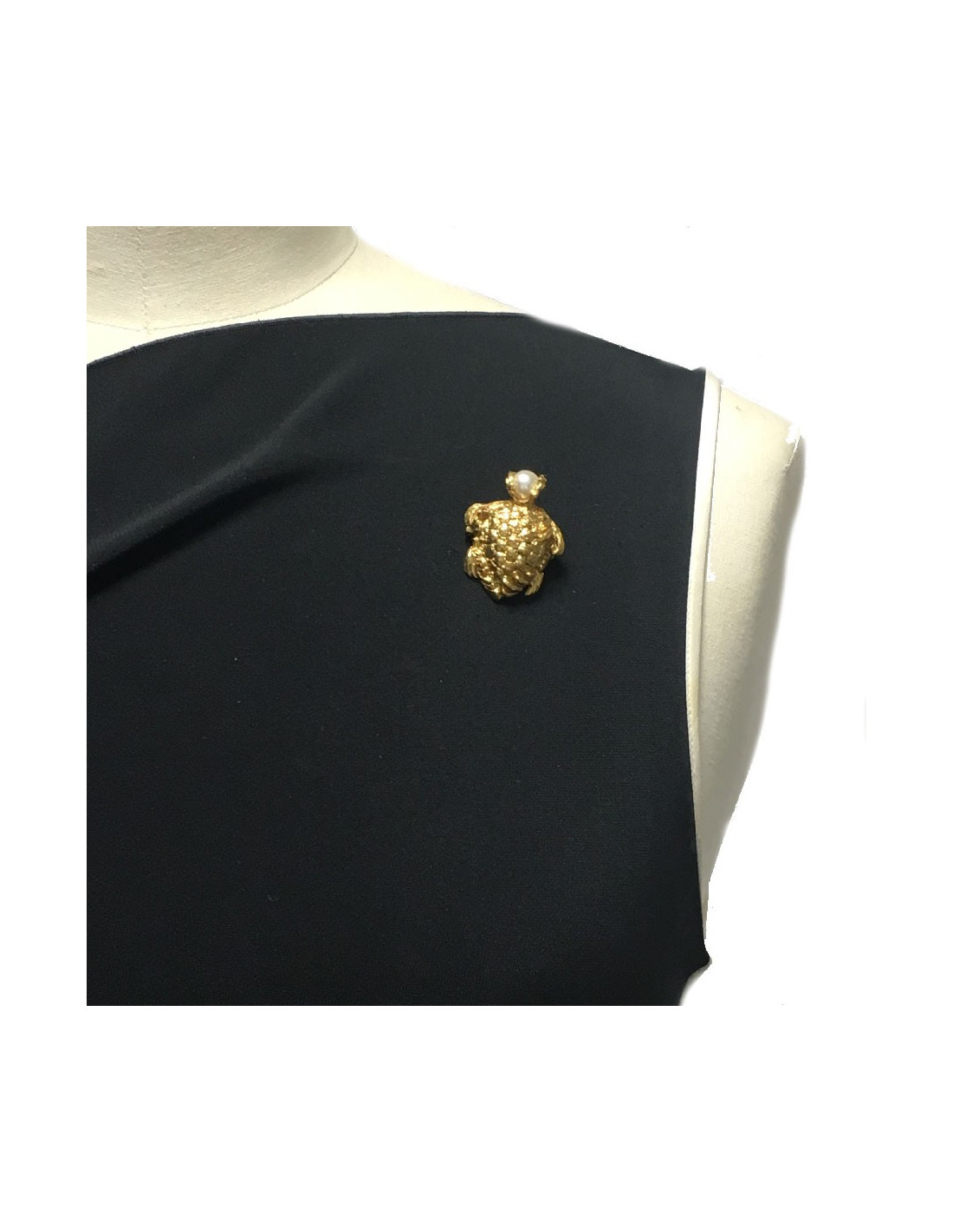 Broche YSL Yves Saint Laurent tortue en métal doré et perle nacrée
