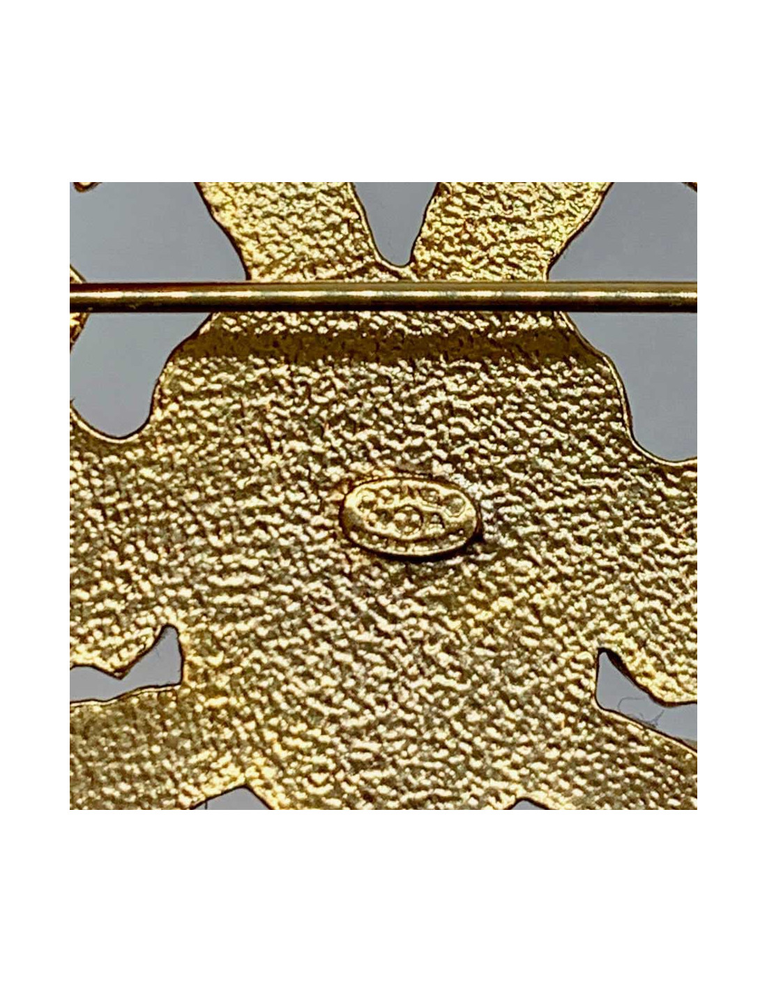 Cette broche est en très bon état. La dorure est légèrement passée au dos. La pastille de la marque est présente.