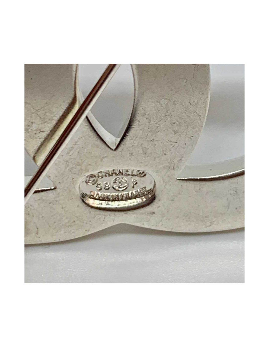 Un classique! Retrouvez le CC de la marque sous forme de broche, en métal argentée. Les lettres CHANEL sont gravées sur chaque C.