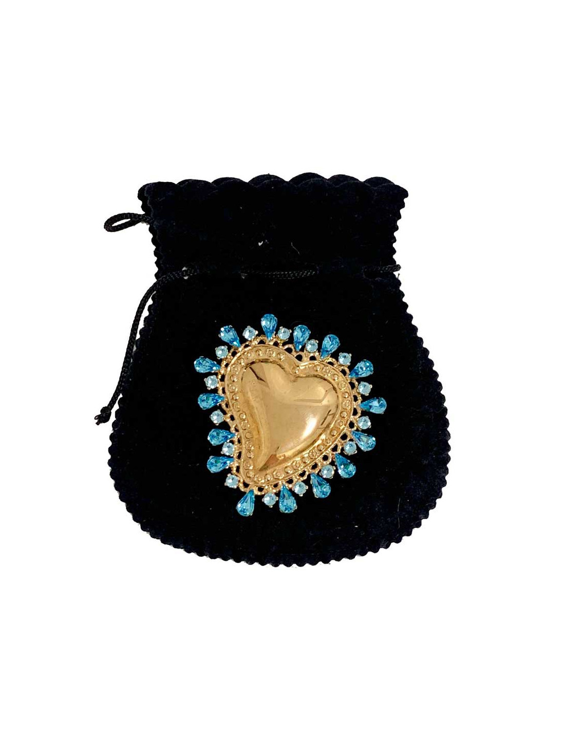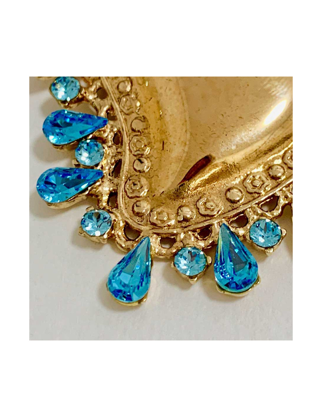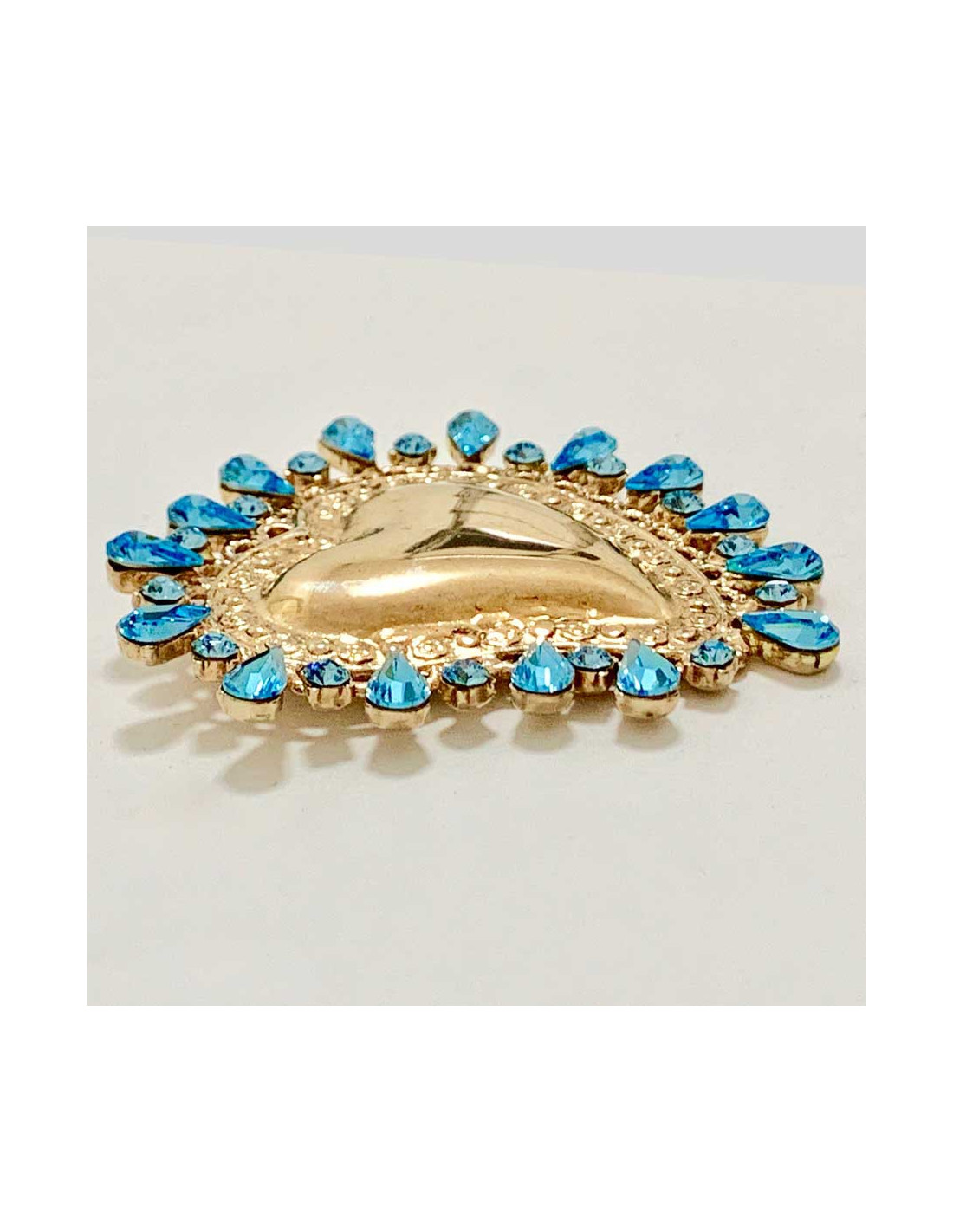 Broche CHRISTIAN LACROIX coeur doré strass bleu
