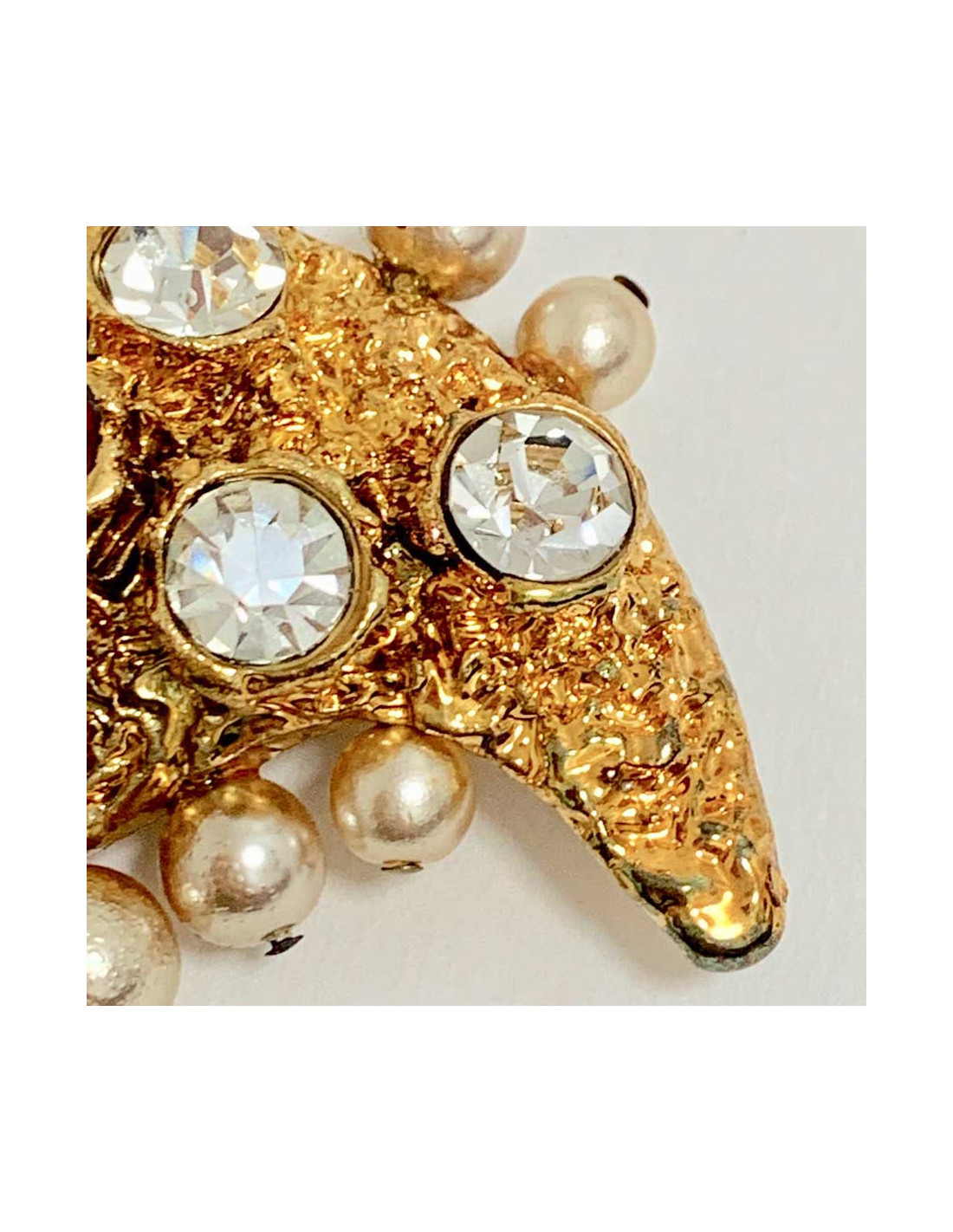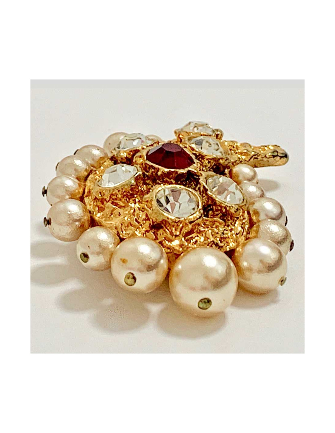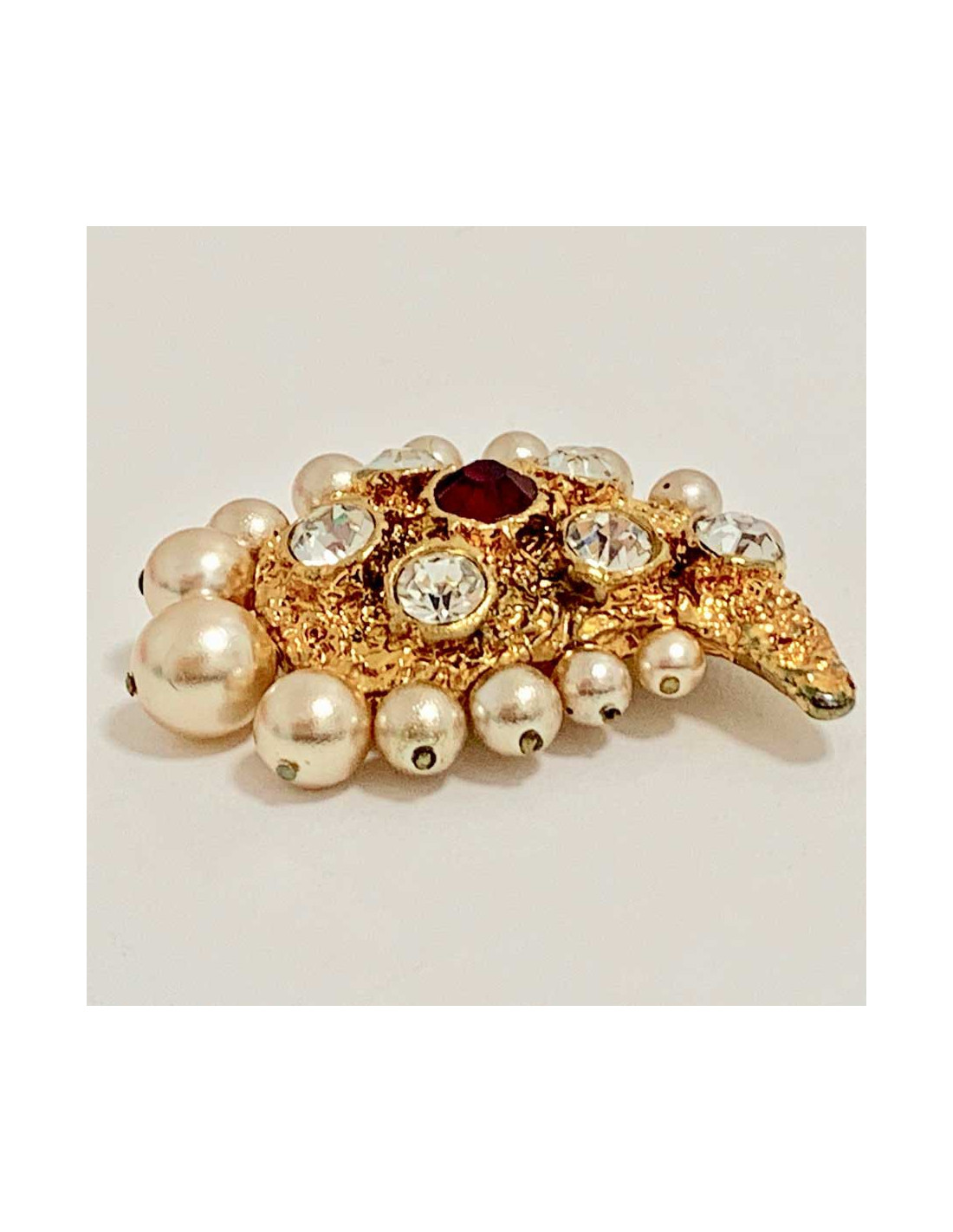 Broche CHRISTIAN LACROIX vintage strass perle et métal doré