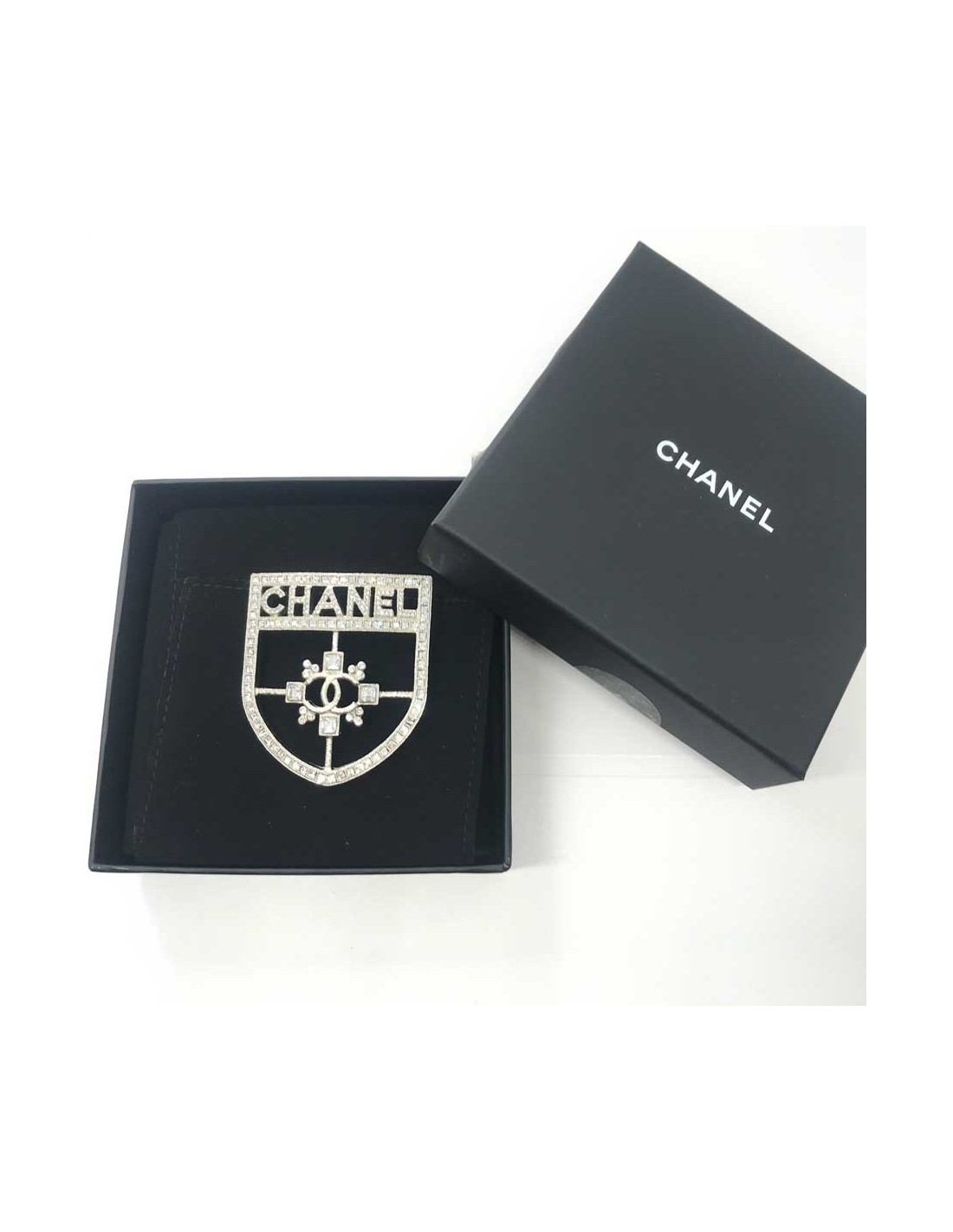 Broche CHANEL ecusson strass