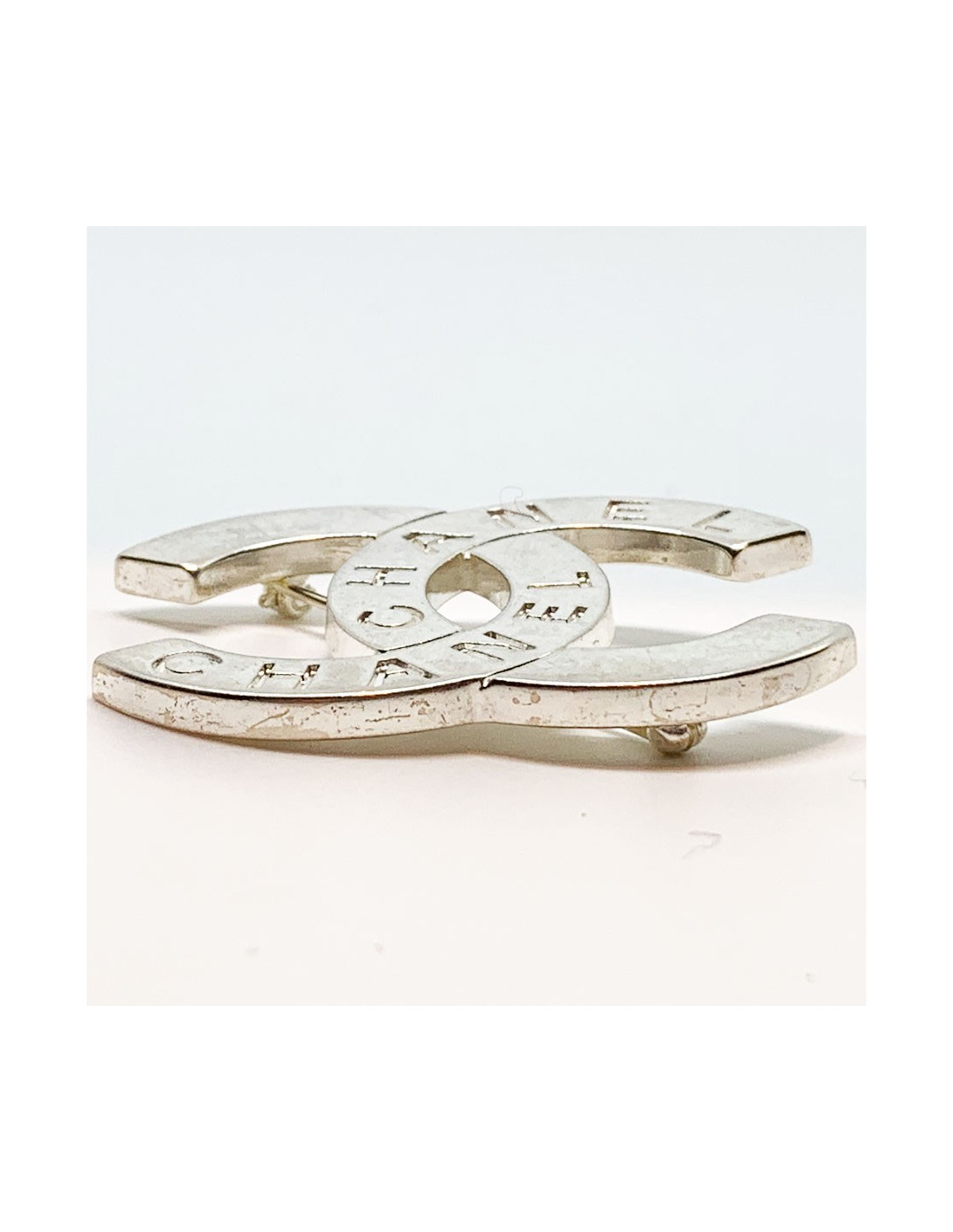 Broche CHANEL CC argenté vintage