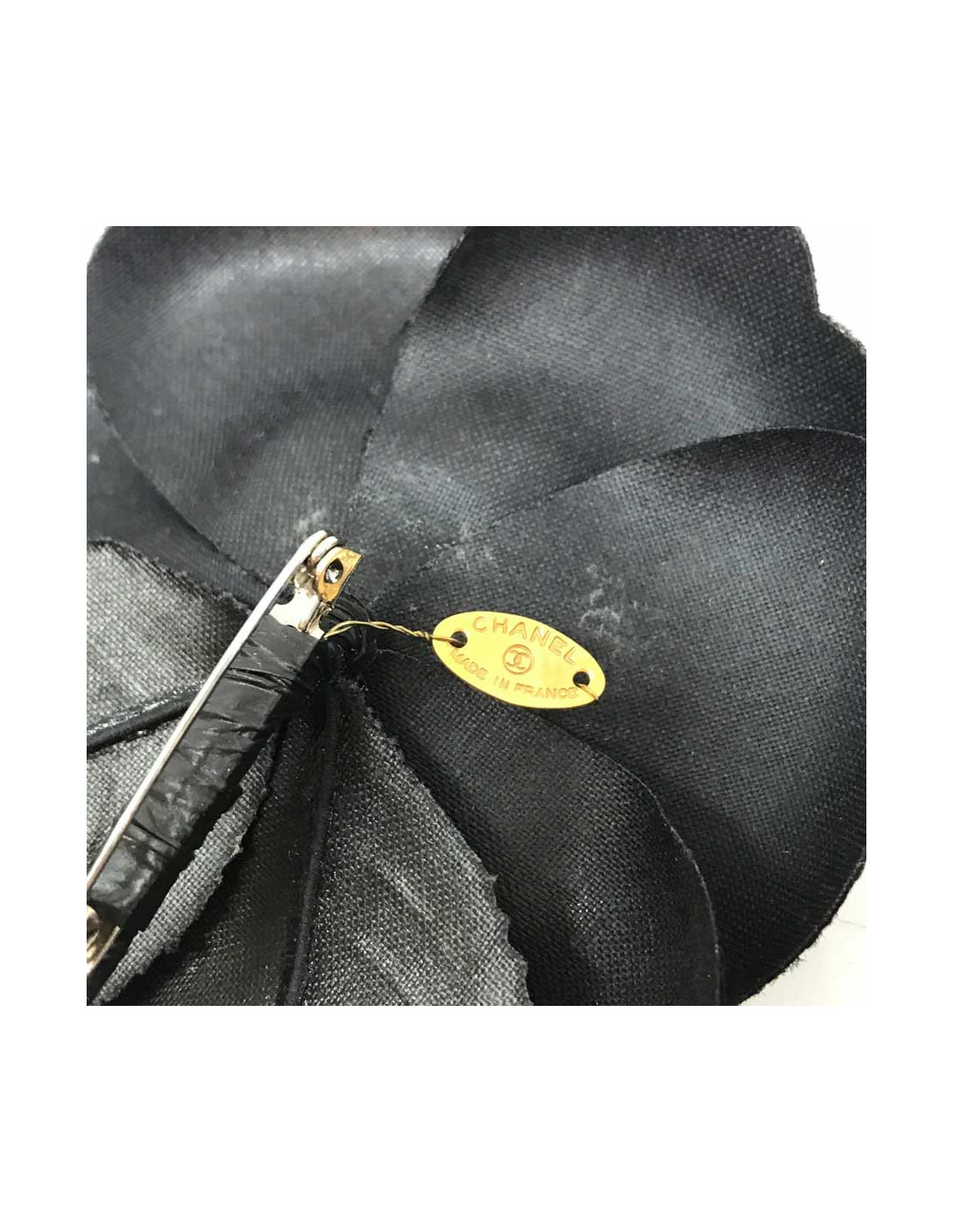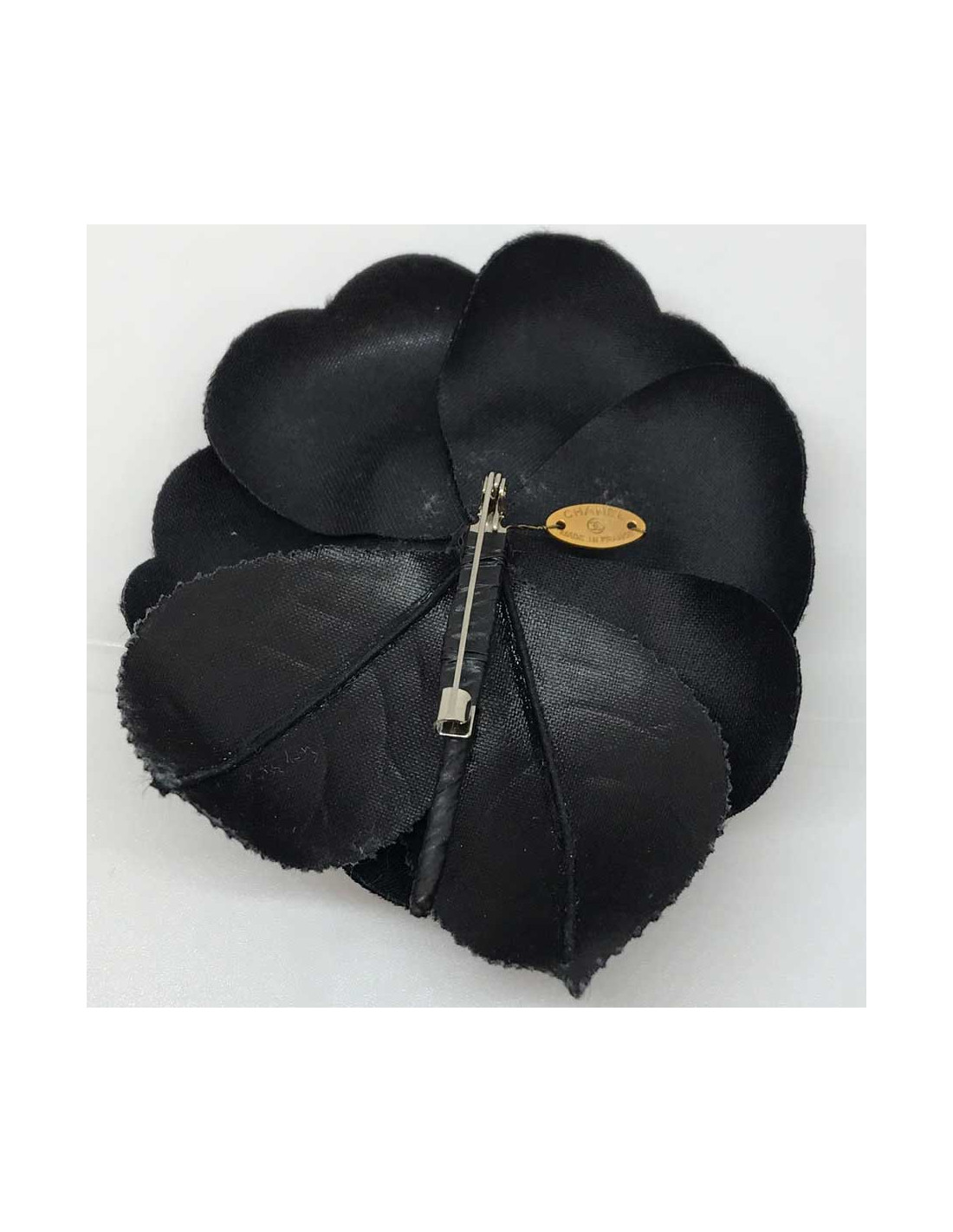 L'emblème de la maison CHANEL reste indubitablement le camélia. Le pétale et les feuilles du camélia sont en tissu noir et nous pouvons découvrir au coeur de la fleur, des pistils noirs.