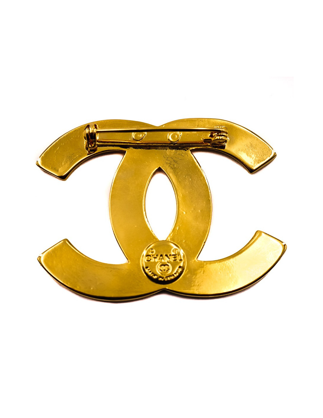 Le bijou est de la Maison CHANEL qui nous propose ici une broche sous son aspect le plus sobre. L'emblème de la marque CC en métal doré à l'or fin.