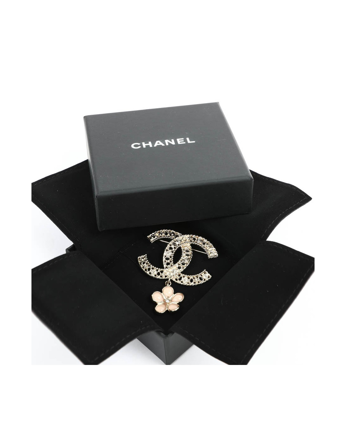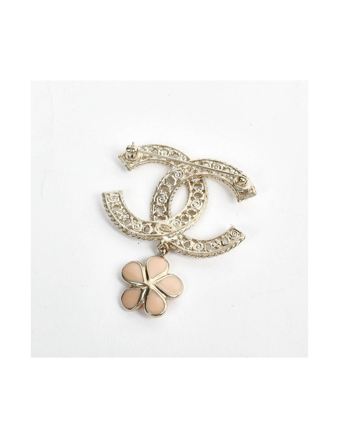 Broche CHANEL dble C et fleurette