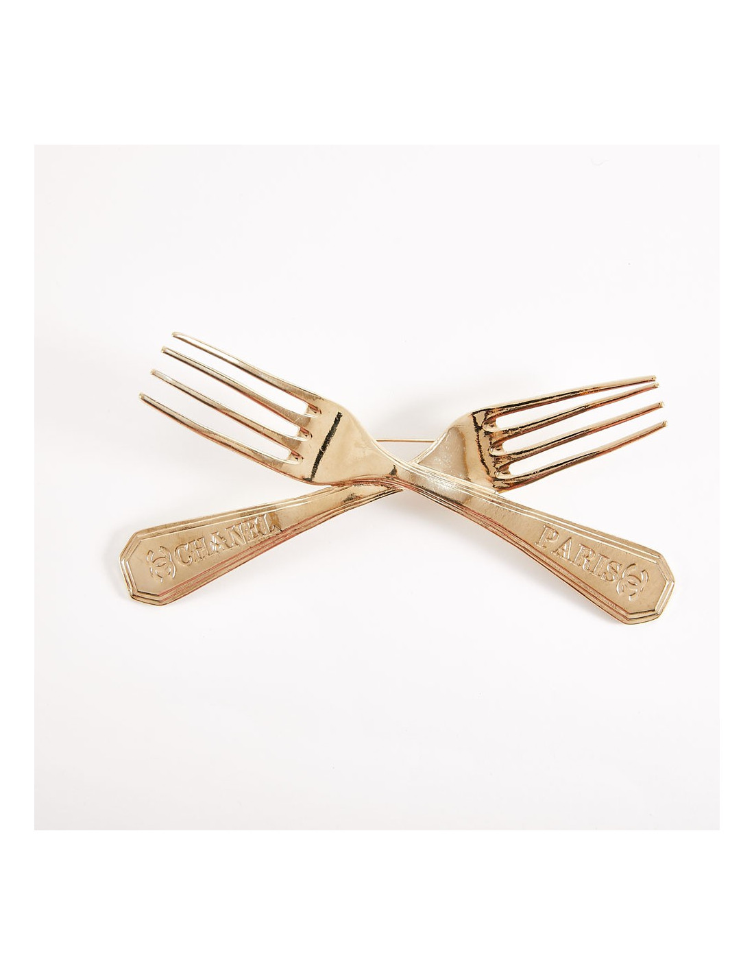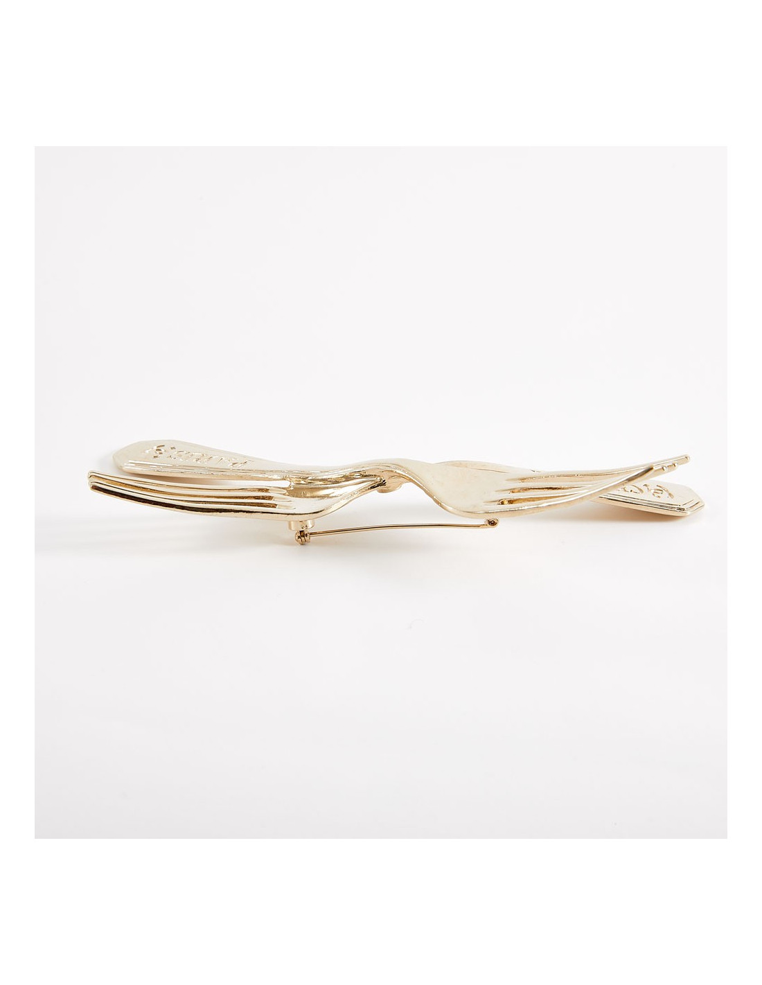 Collector. Pièce du défilé Brasserie Gabrielle, une des dernières collections automne/hiver 2015/2016 de Karl Lagerfeld. Cette broche est dorée or pâle.