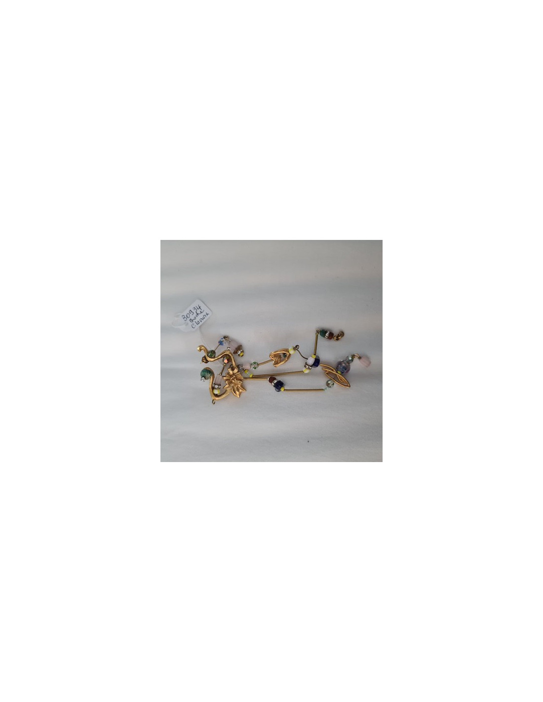 Nouveau Derniers articles en stock BROCHES Pendentif MARGUERITE DE VALOIS broche "le jardin enchanté" MARGUERITE DE VALOIS 39381 1 750,00 € Pendentif MARGUERITE DE VALOIS broche "le jardin enchanté" Condition : jamais portéMatière : métal doré à l'or fin, pâte de verreCouleur : doré, rubis, émeraude, nacreBijouterie : métal doré à l'or finDimensions : 6,5 x 11 cmDétails : longue broche représentant des fleurs, libellules, étoiles et une abeille en métal doré orné de pâte de verre rubis et... Ajouter au panier