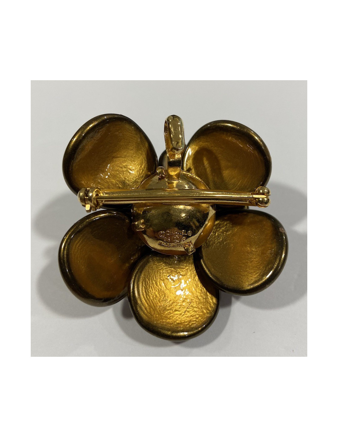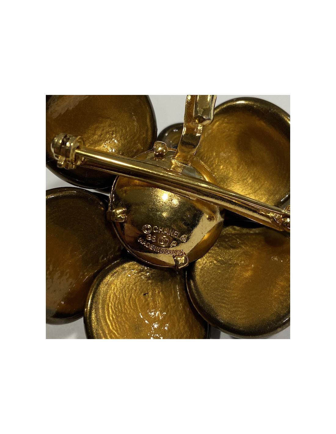 Broche Chanel camélia dorée