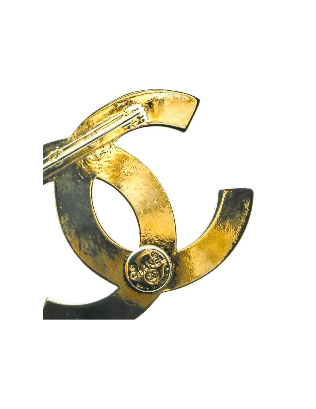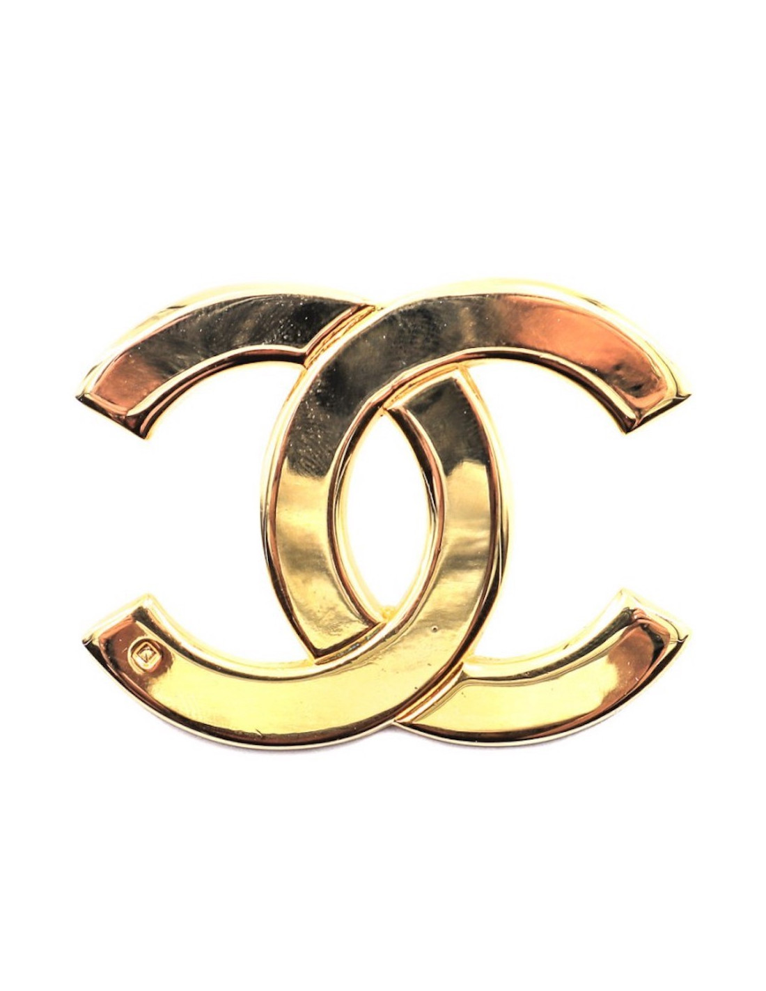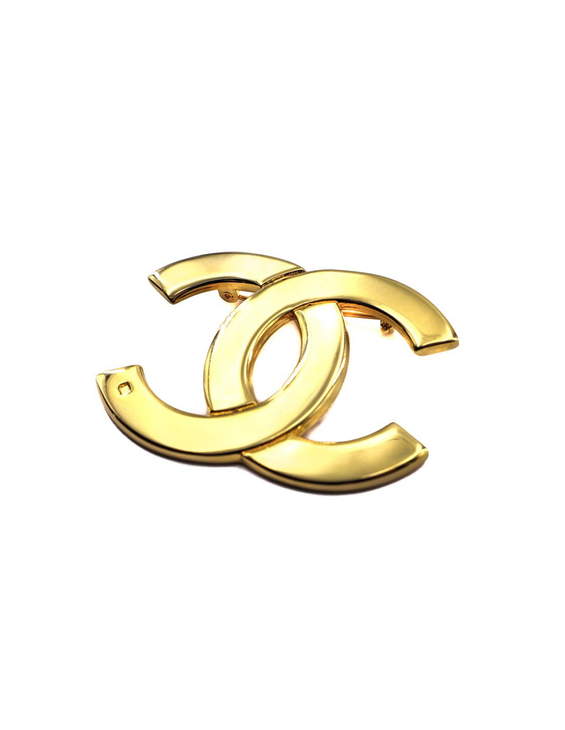 Le bijou est de la Maison CHANEL qui nous propose ici une broche sous son aspect le plus sobre. L'emblème de la marque CC en métal doré à l'or fin.