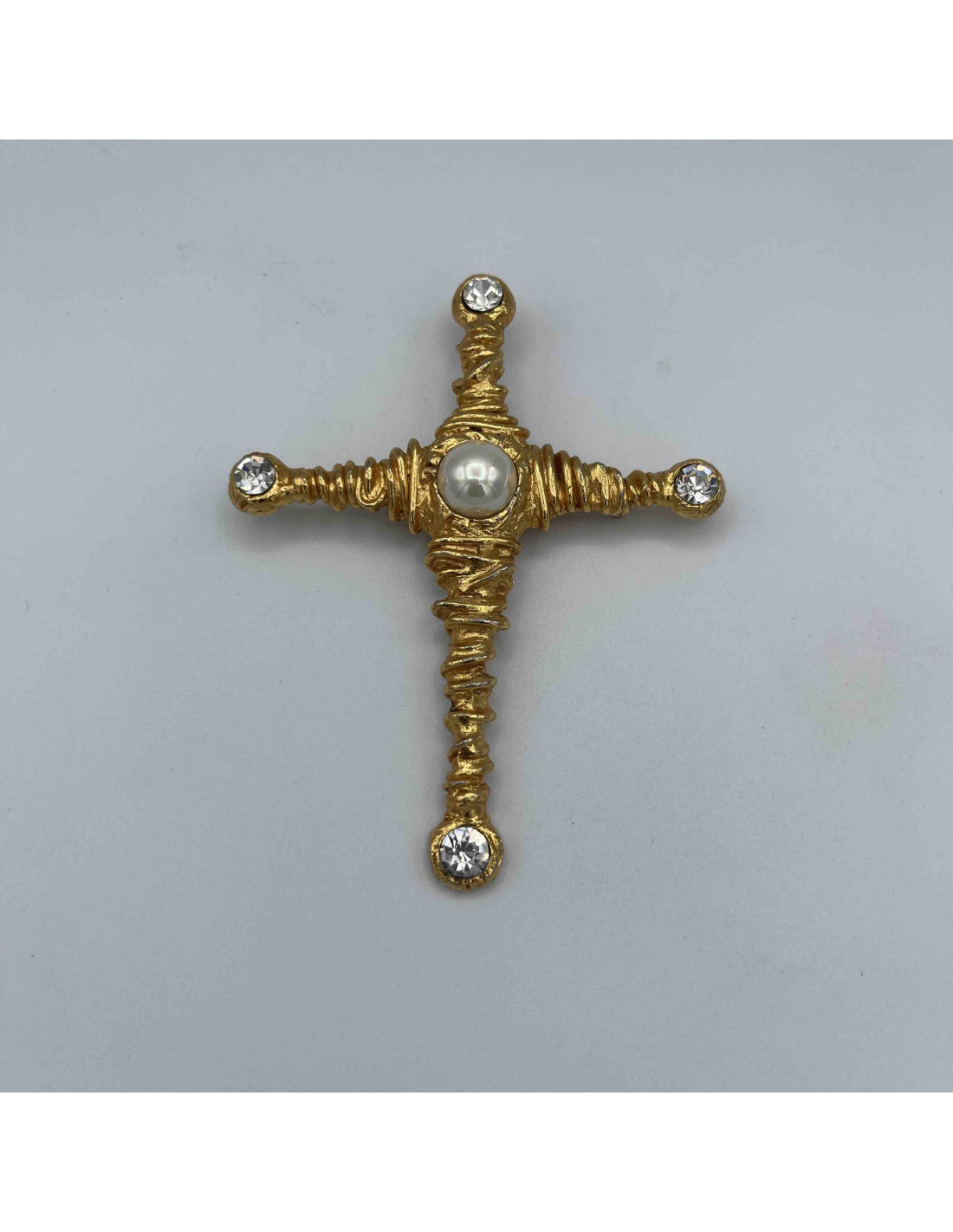 Broche vintage CHRISTIAN LACROIX dorée strass et perle