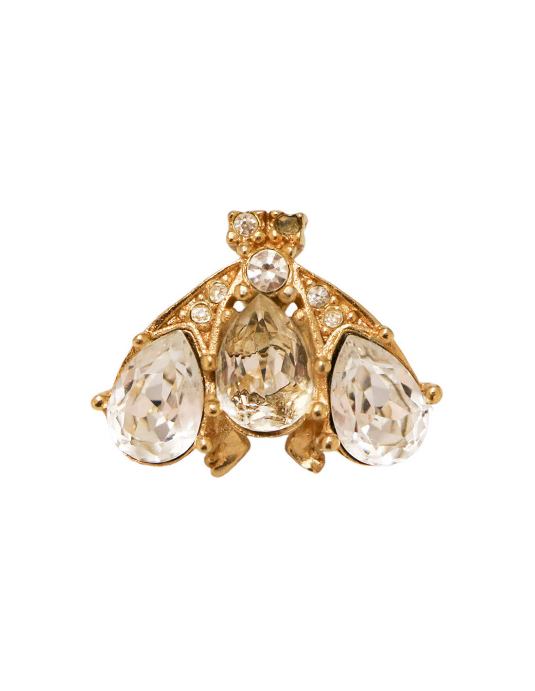 Détails : les ailes de l'abeille sont représentées par trois brillants tandis que les yeux sont des petits strass