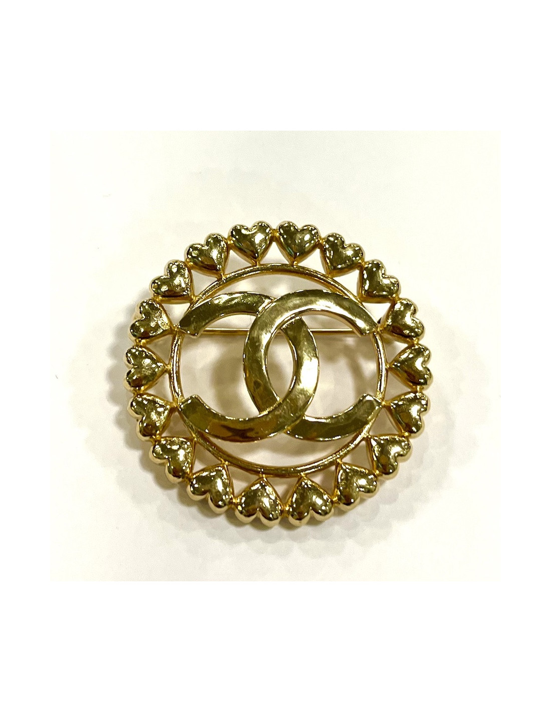 Broche Chanel coeurs ronde dorée