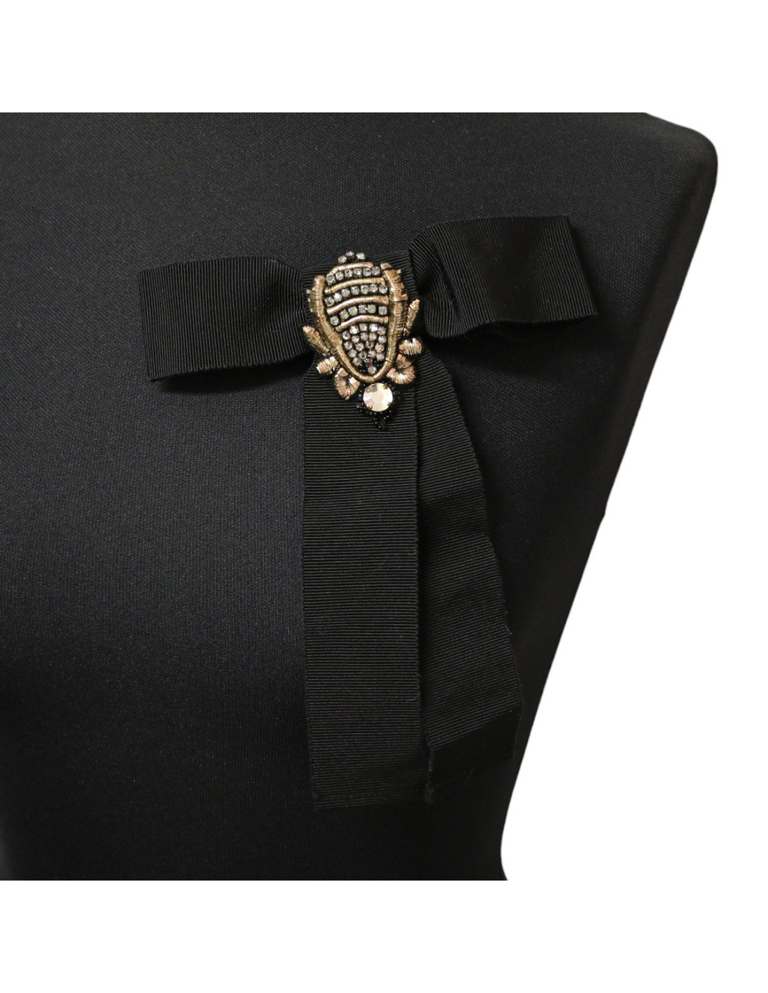 Détails : les broderies métalliques et strass sur la broche en forme de noeud pour cheveux donnent l'effet d'une abeille.
