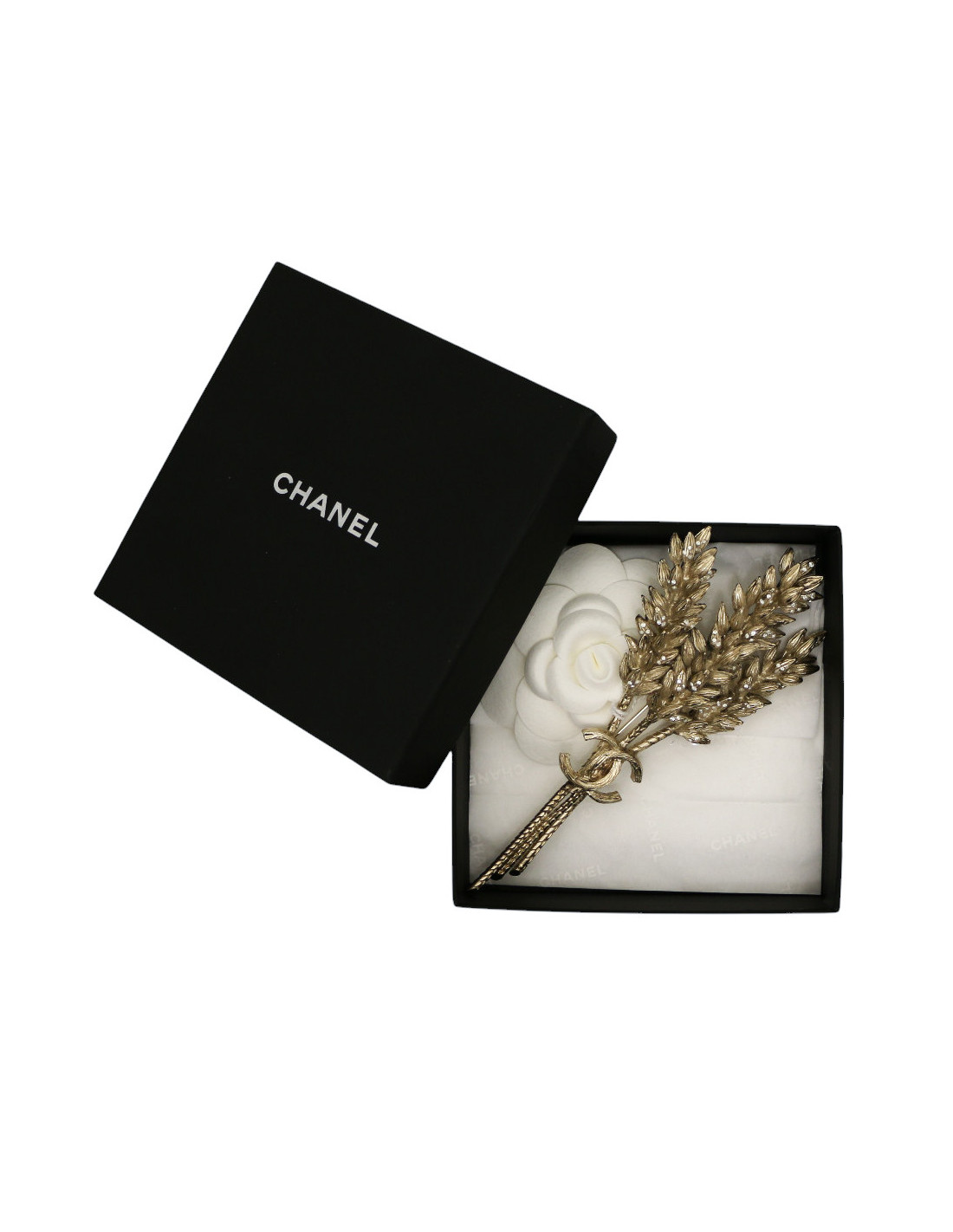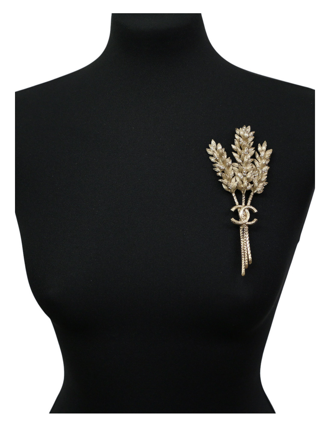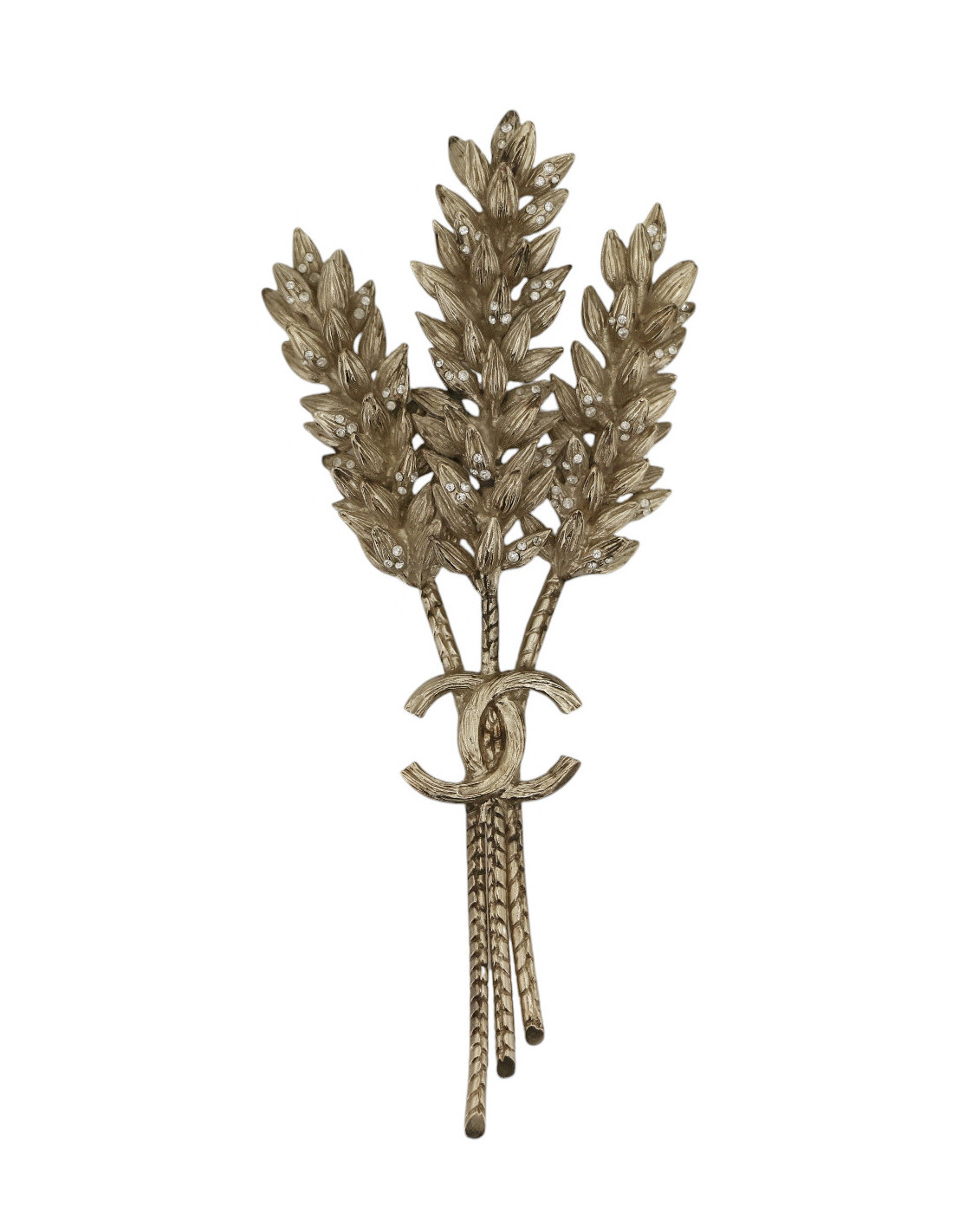 Broche épis de blé CHANEL métal doré strass