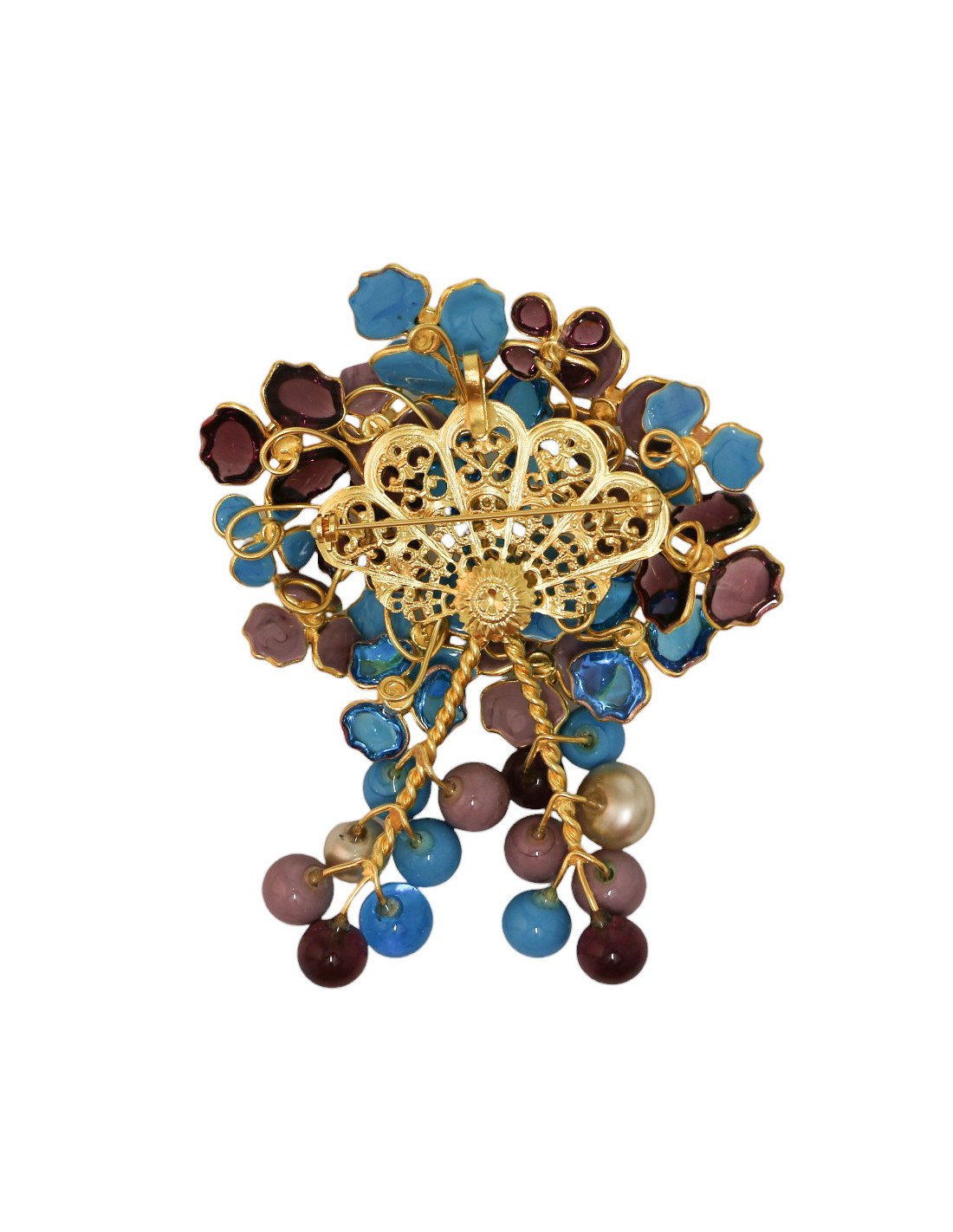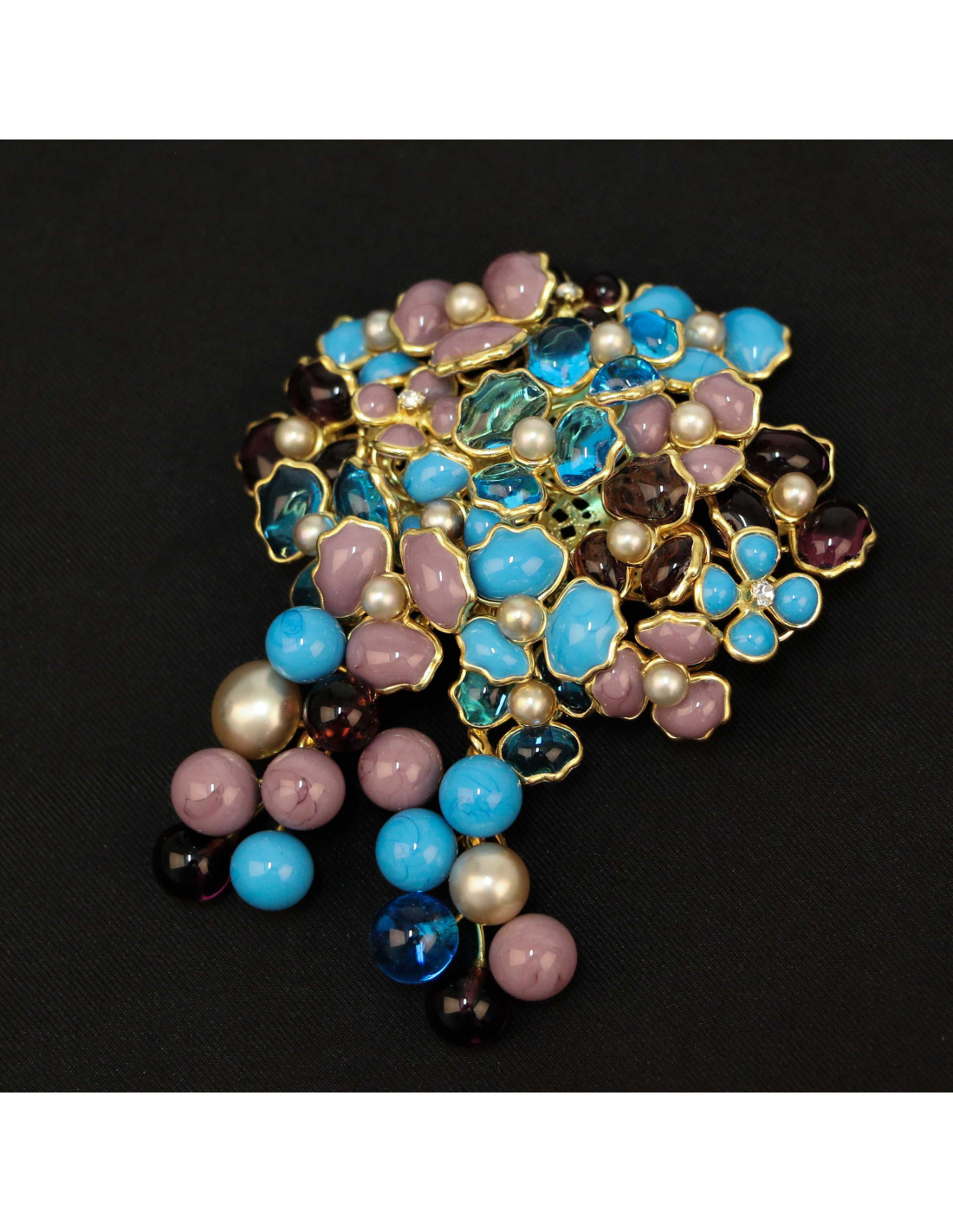 Broche MARGUERITE DE VALOIS "Bouquet précieux" parme turquoise"