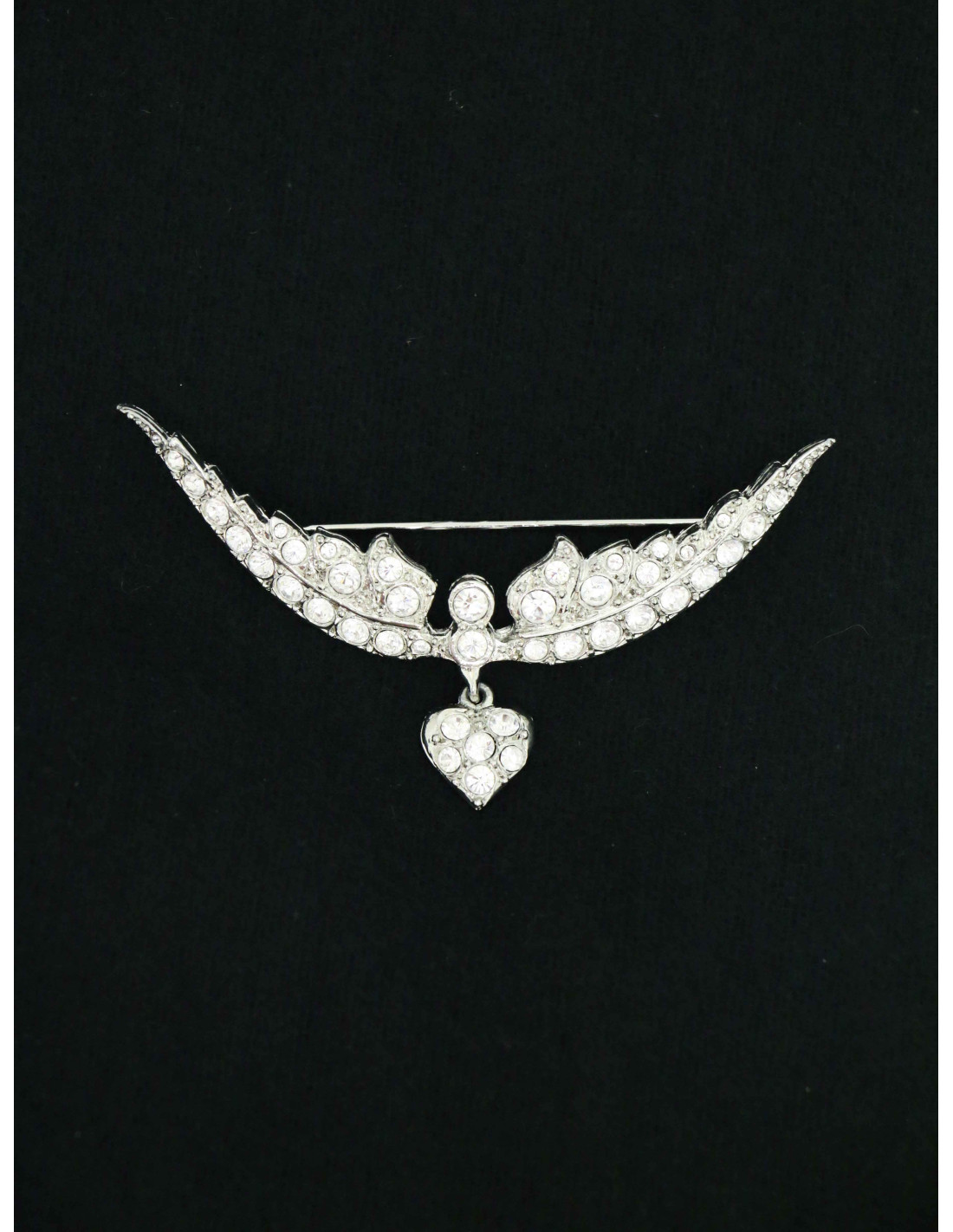 Détails : sublime broche en forme d'ailes déployées et un petit coeur pendant ornés de strass