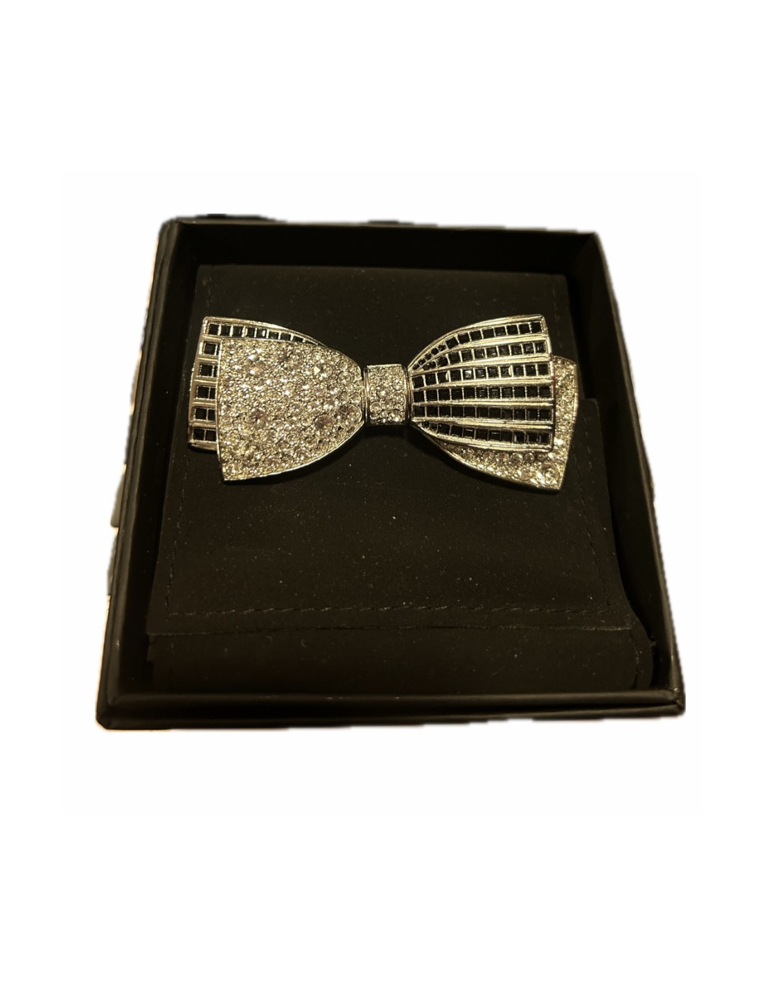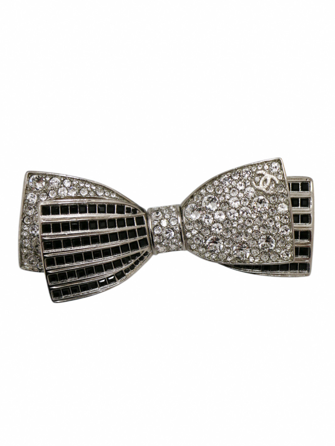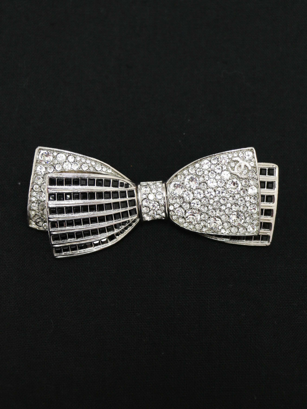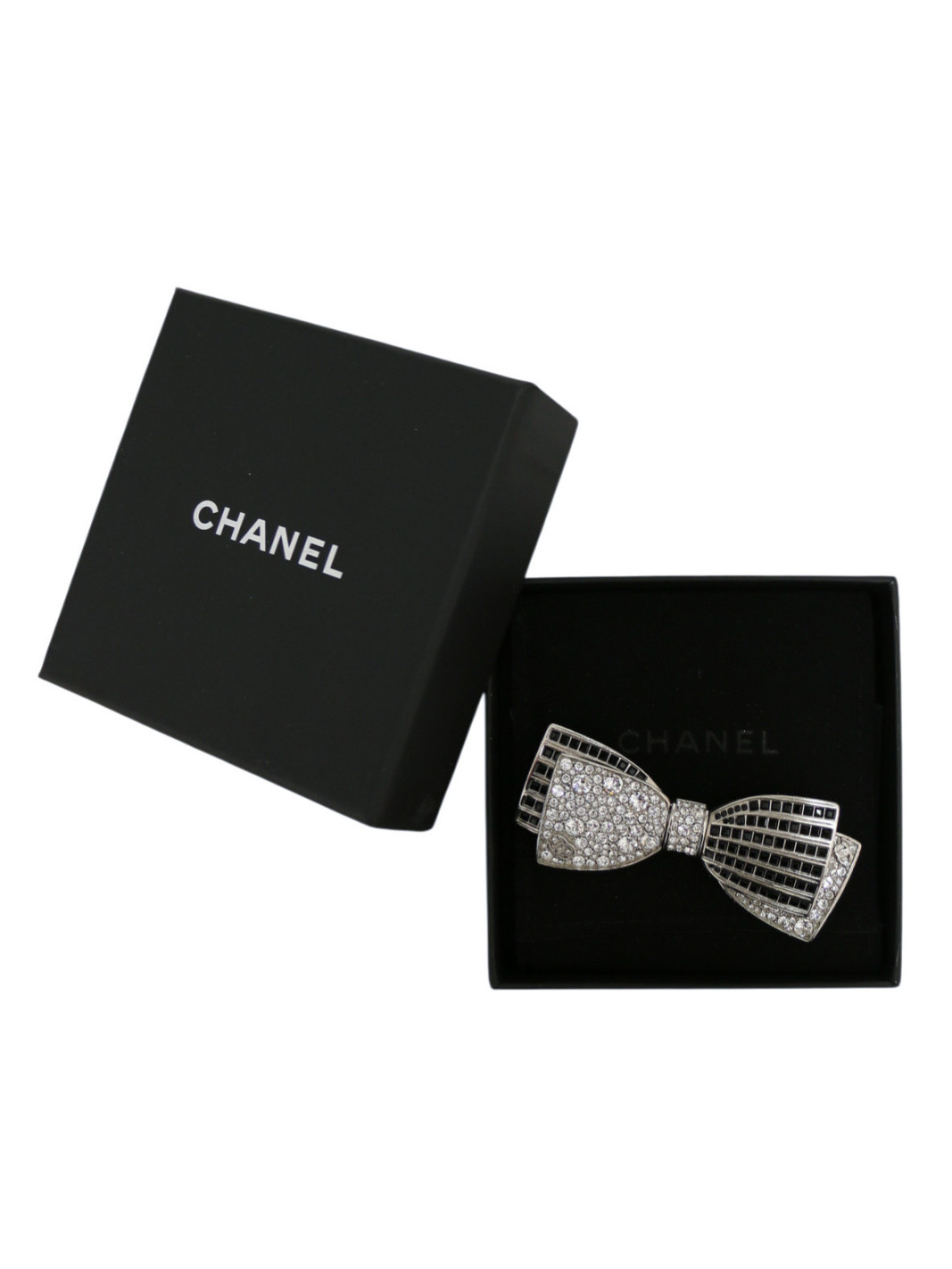 Broche Nœud Chanel Collection Printemps 2017 en Métal Argenté et Strass