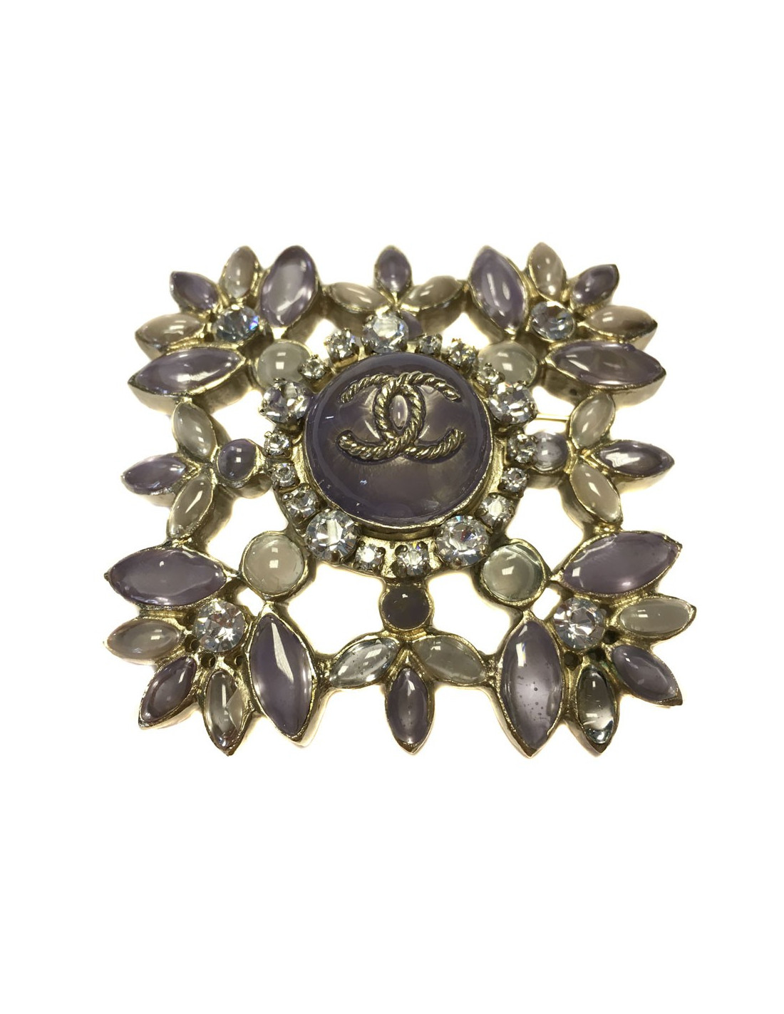 Nouveau Vendu BROCHES Broche CHANEL Pendentif strass ruthénium CHANEL 39813 1 050,00 € Broche CHANEL Pendentif argent et noir Condition : bon étatPays de fabrication : FranceMatière : métal, résine, perle fantaisie, cristaux Swarovski Couleur : argent, métalDimensions : 6.5 x 6.5 cmStamp : ouiAnnée : Automne 2014Bijouterie : métal argentDétails : Broche carrée, ornée au centre d'un double C entrelacé. Les quatre pierres en résine noire... Voir