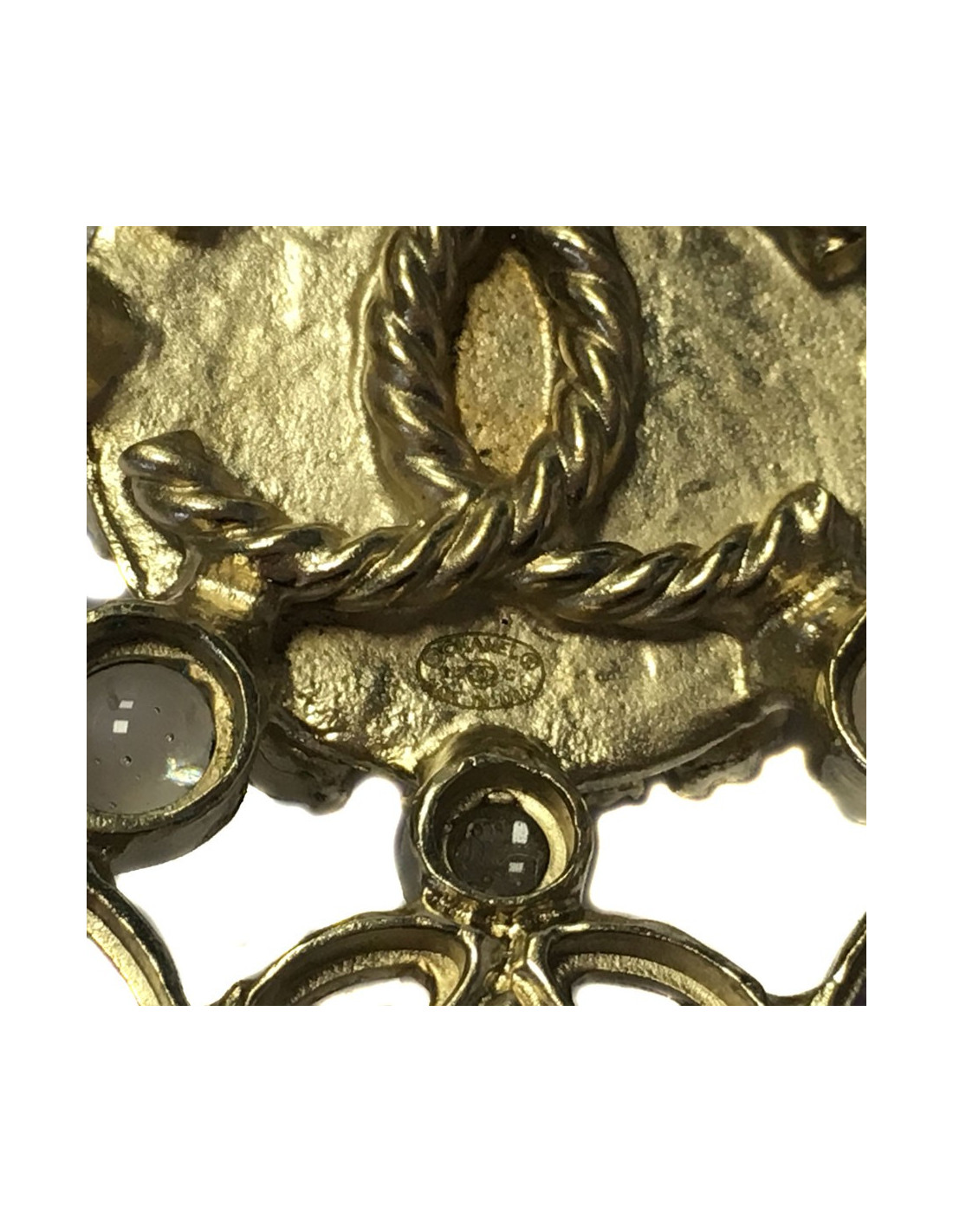 Derniers articles en stock BROCHES Broche Epingle CHANEL argent perles nacrées CHANEL 36048 890,00 € Broche Epingle CHANEL 2015 Condition : très bon étatPays de fabrication : FranceMatière : métal, strass, perleCouleur : argentDimensions : 3 x 3 cm, longueur épingle 5 cmStamp : ouiAnnée : 2015Bijouterie : métal argentDétails : broche en métal argent vieilli, perles nacrées et strass sur un fond en résine. Aucun strass ne manque et les perles sont en très... Ajouter au panier