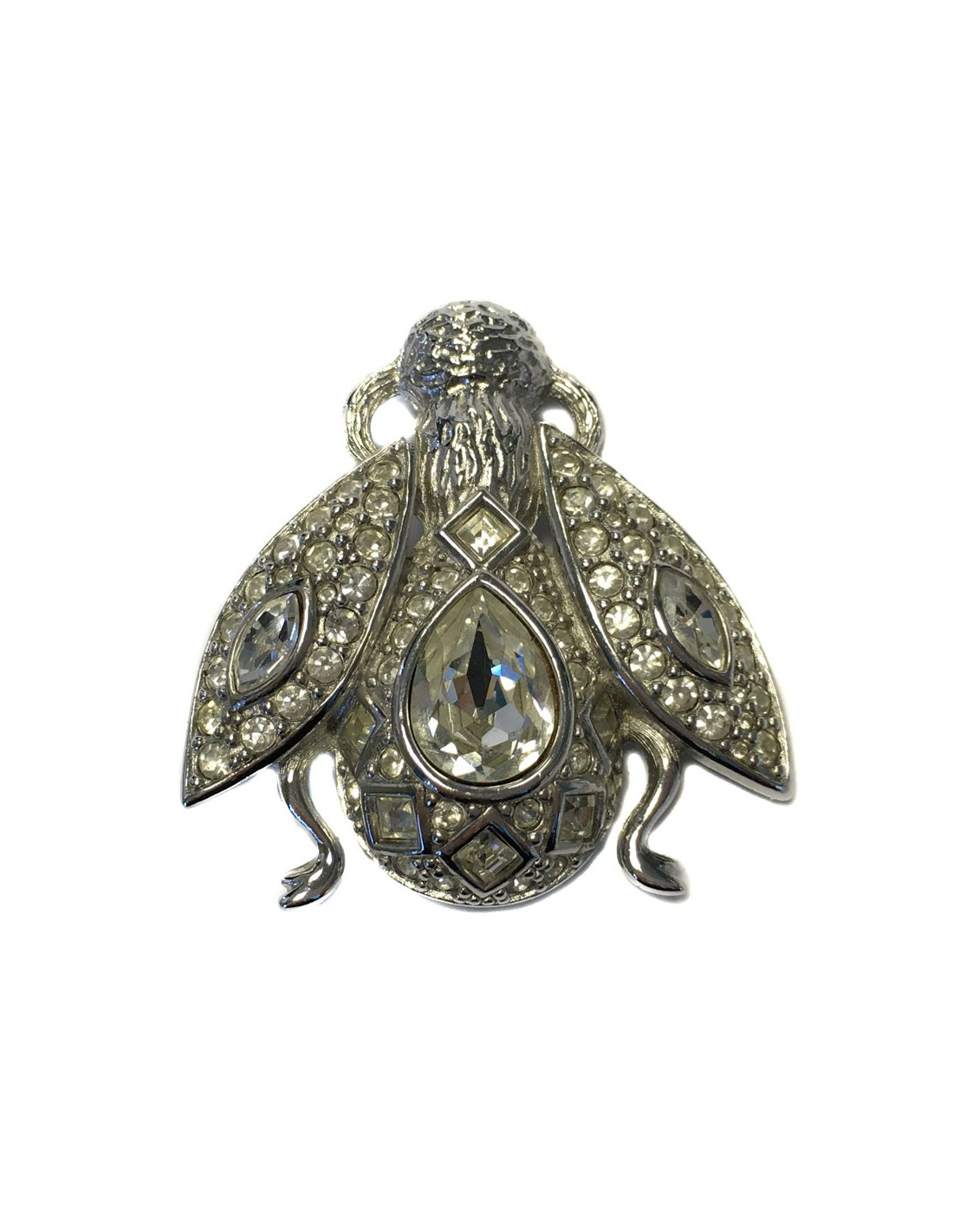 Superbe broche "abeille" de la maison DIOR, en métal argenté, ailes serties de strass. Abdomen et ailes sont composés d'un cristal en forme de goutte. En très bon état.