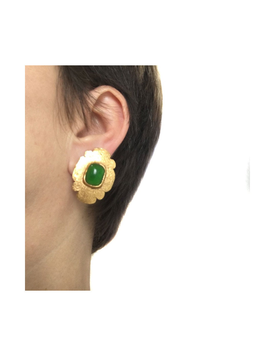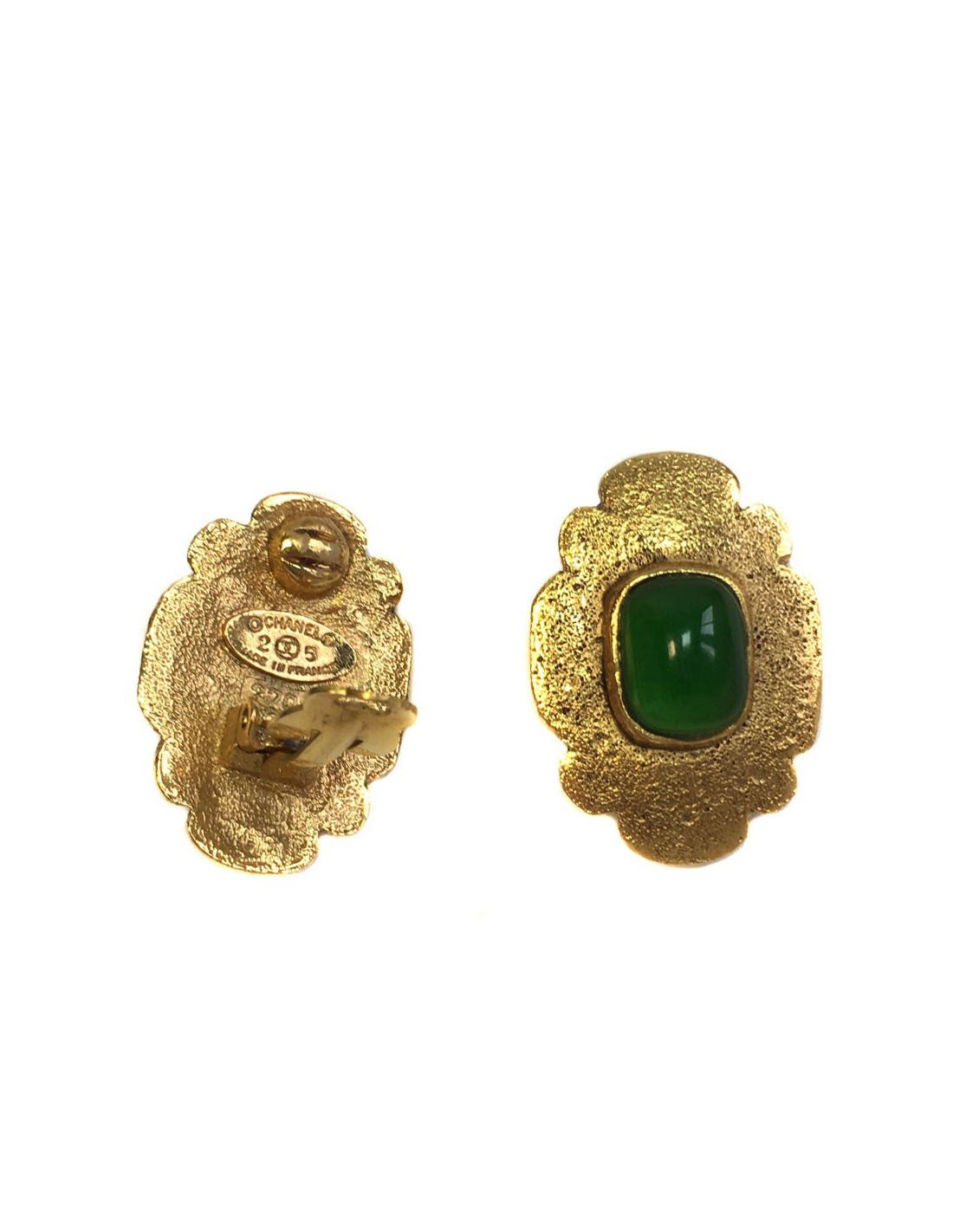 Les clips sont de forme allongée en pâte de verre émeraude au centre.
