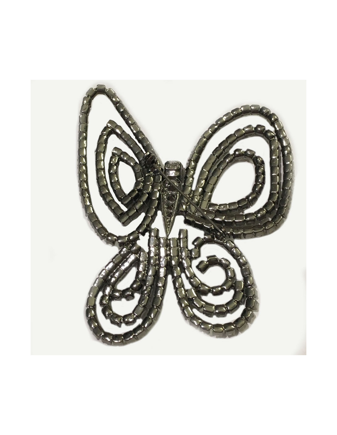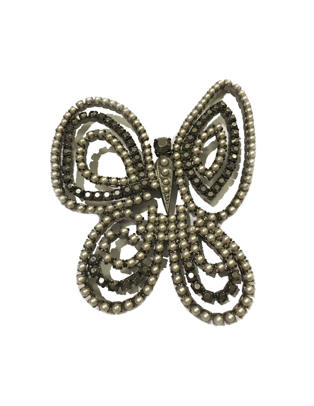 Grande broche DIOR papillon en ruthénium et perles nacrées grises