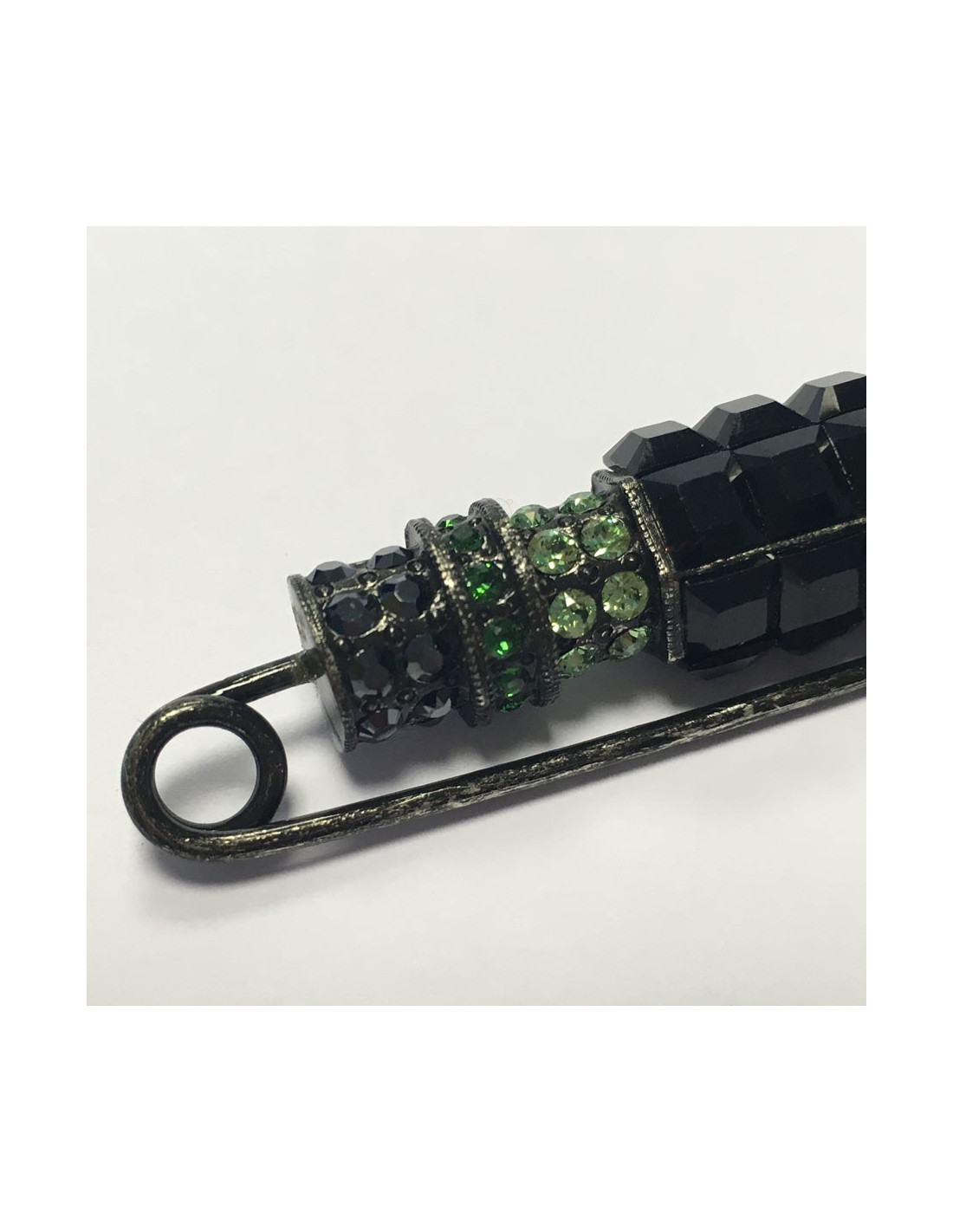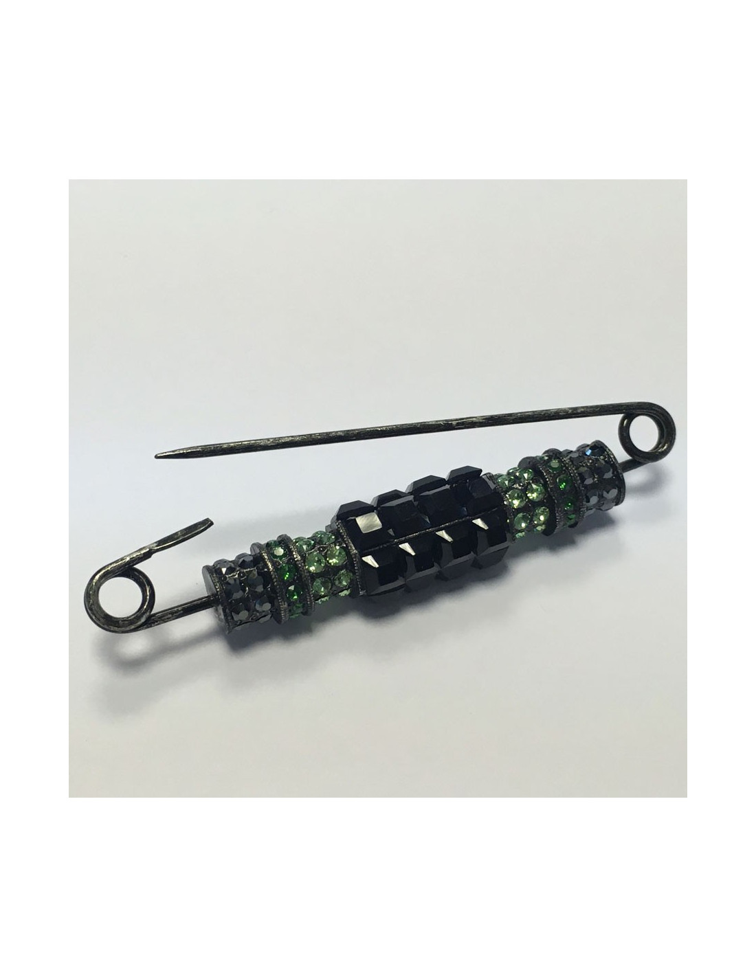 La broche n'a jamais été portée. Les dimensions sont : longueur : 8 cm, largeur : 1,6 cm