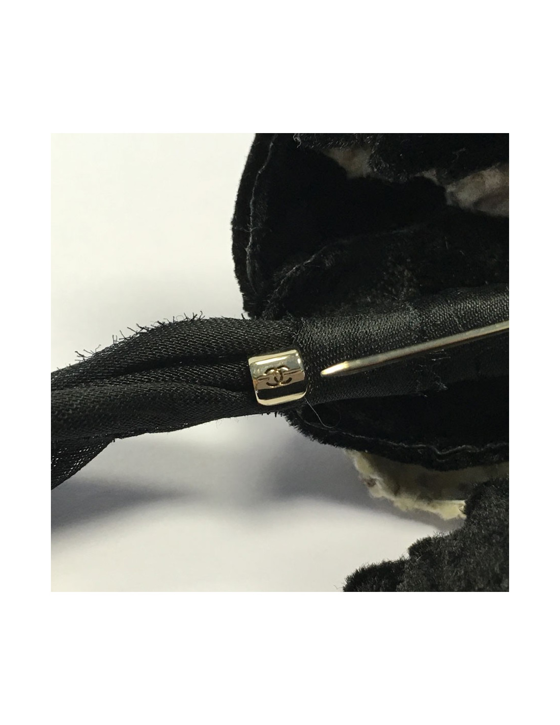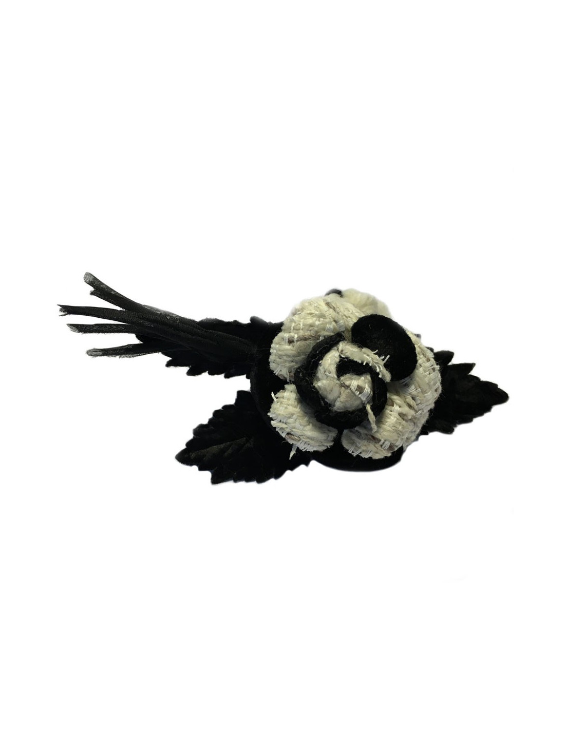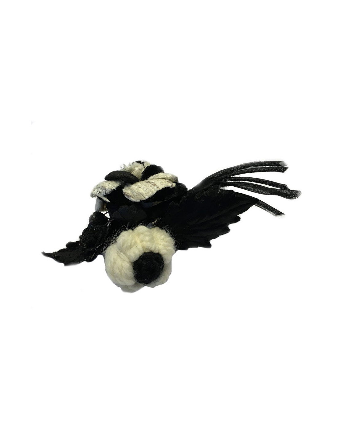 Broche CHANEL en laine et tissu blanc et noir
