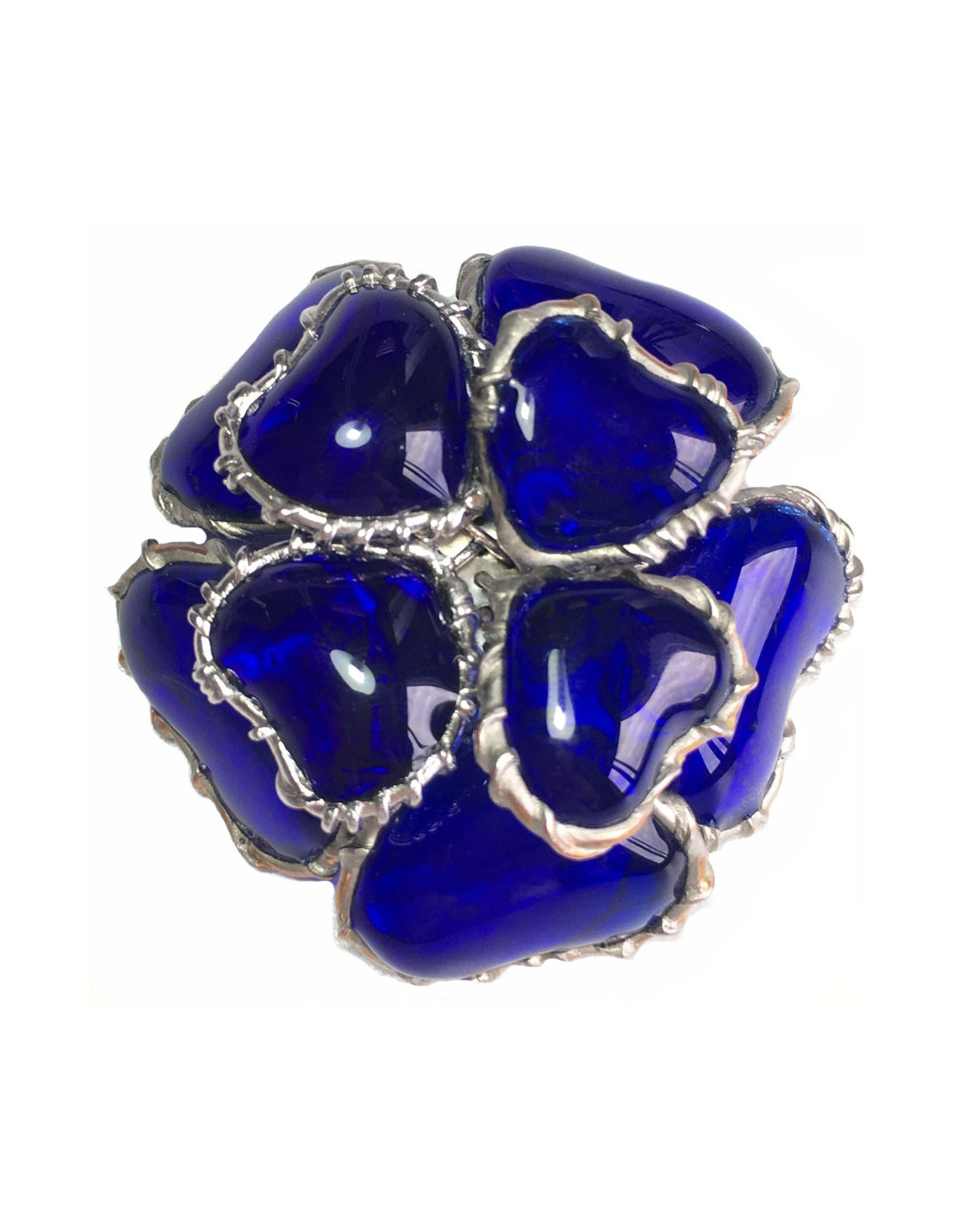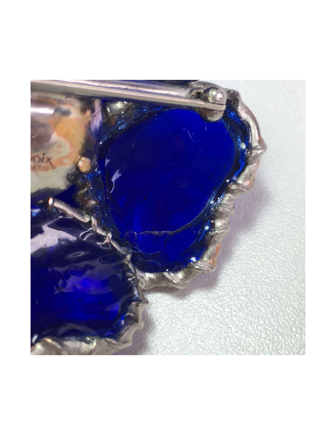 Sublime broche GRIPOIX fleur en pâte de verre saphir et métal argenté. Peut se porter en pendentif. En très bon état.