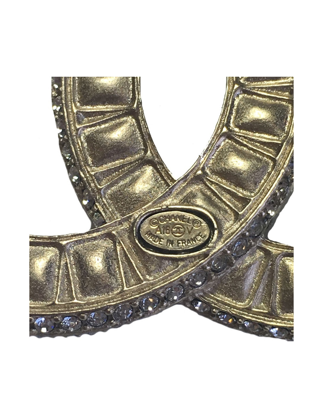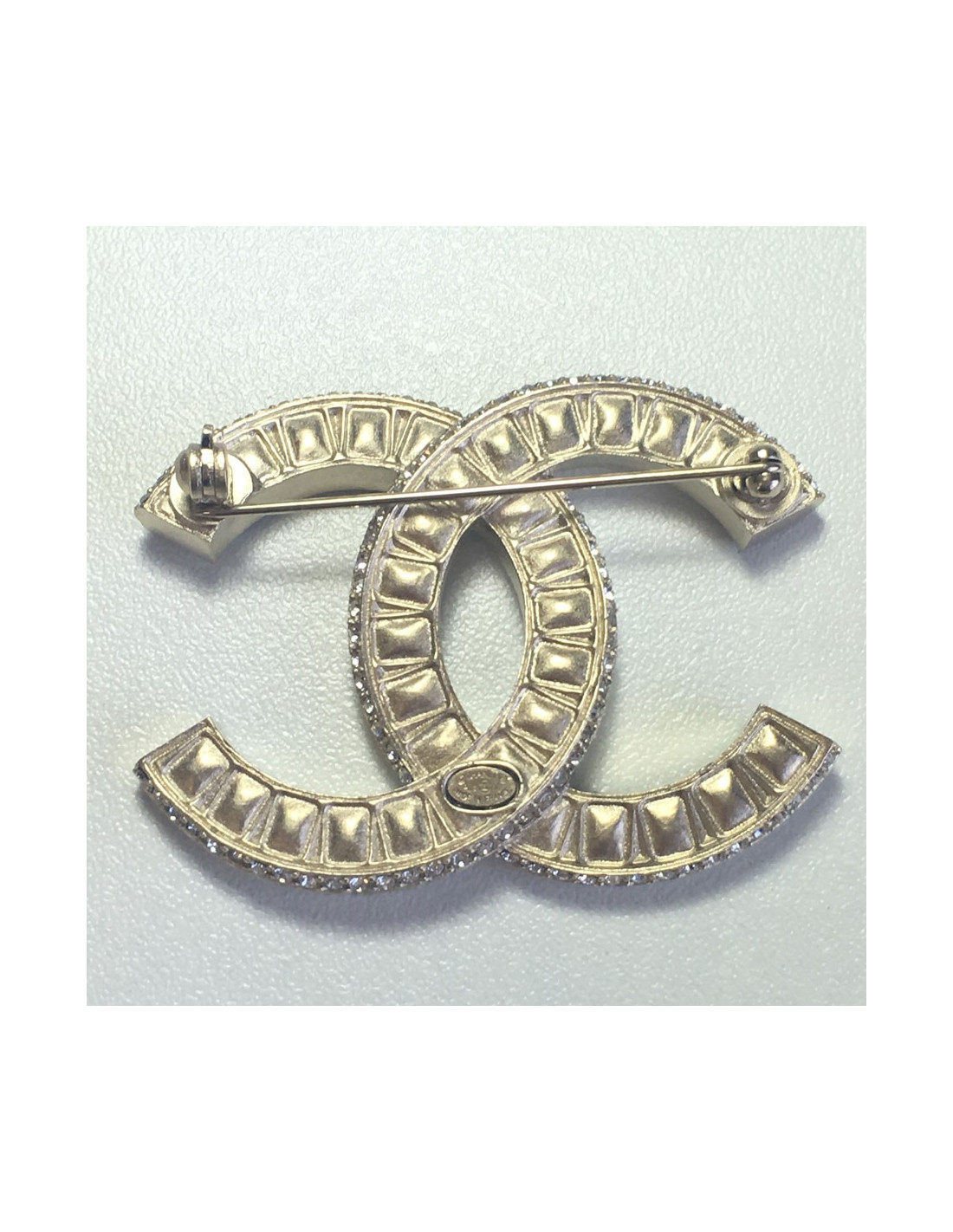 Broche CHANEL CC en cristal taille émeraude et métal doré