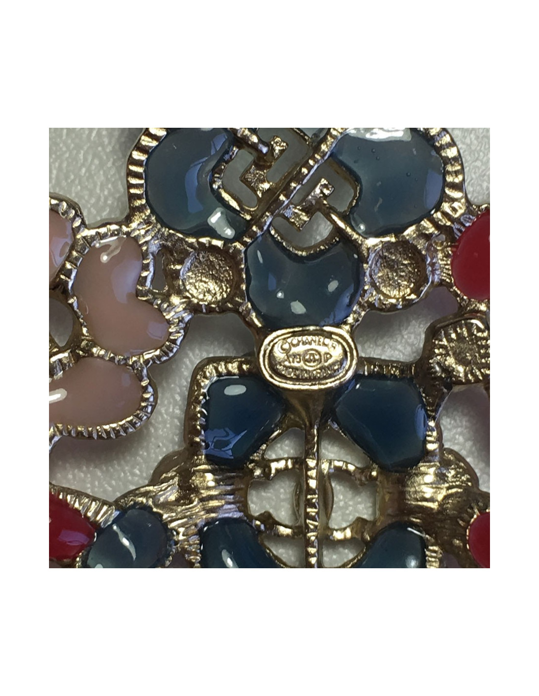 Broche CHANEL en résine multicolore et métal doré