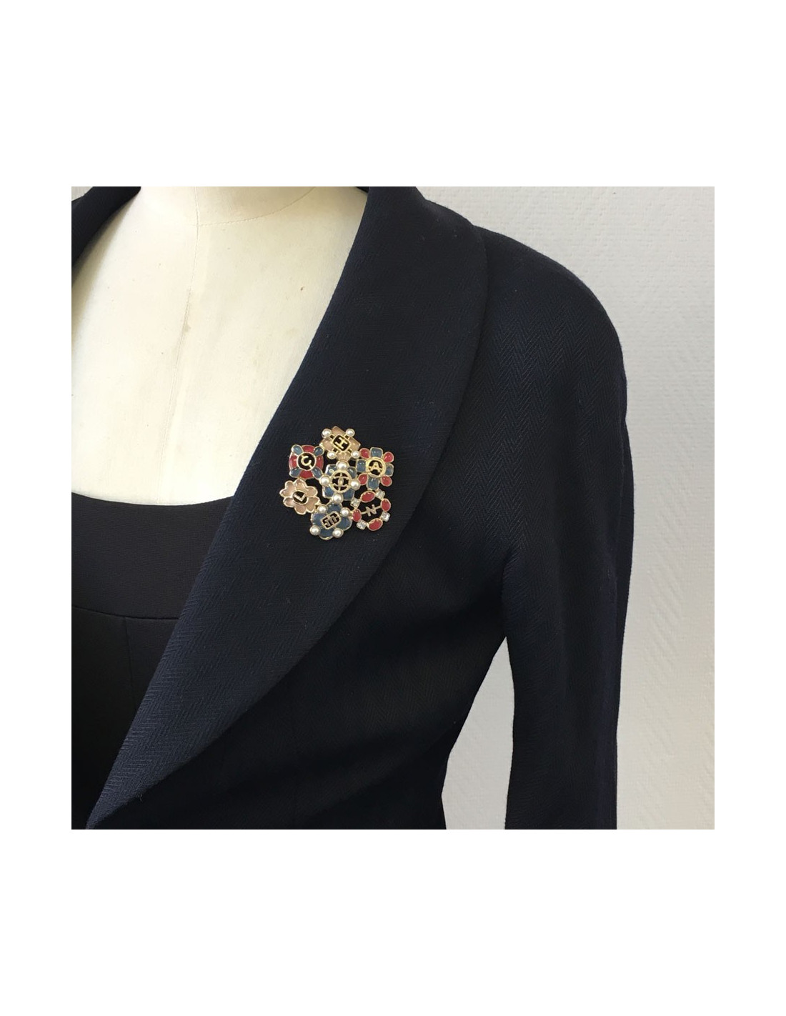 Broche CHANEL en résine multicolore