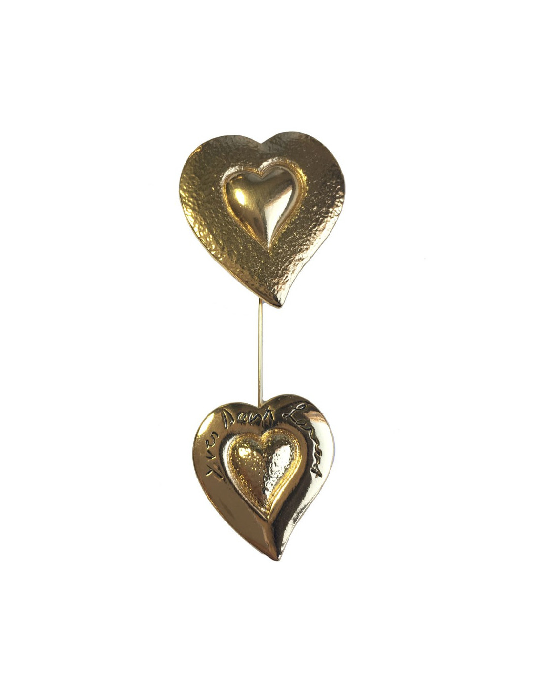 Broche YSL SAINT LAURENT 2 coeurs en métal doré