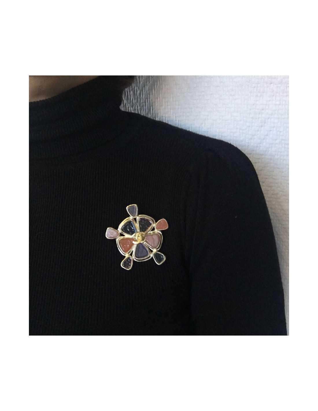 Broche CHANEL en métal doré et résine colorée