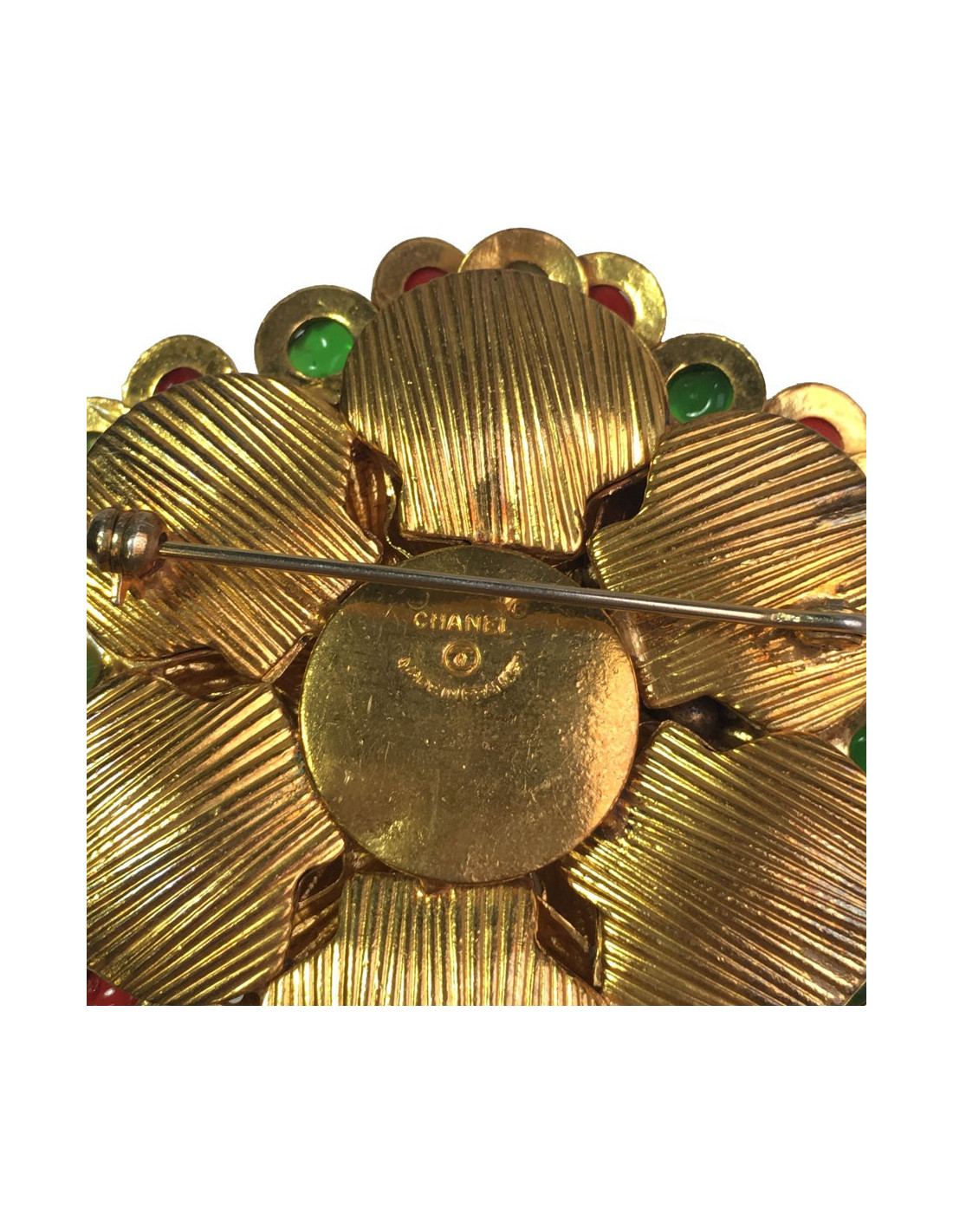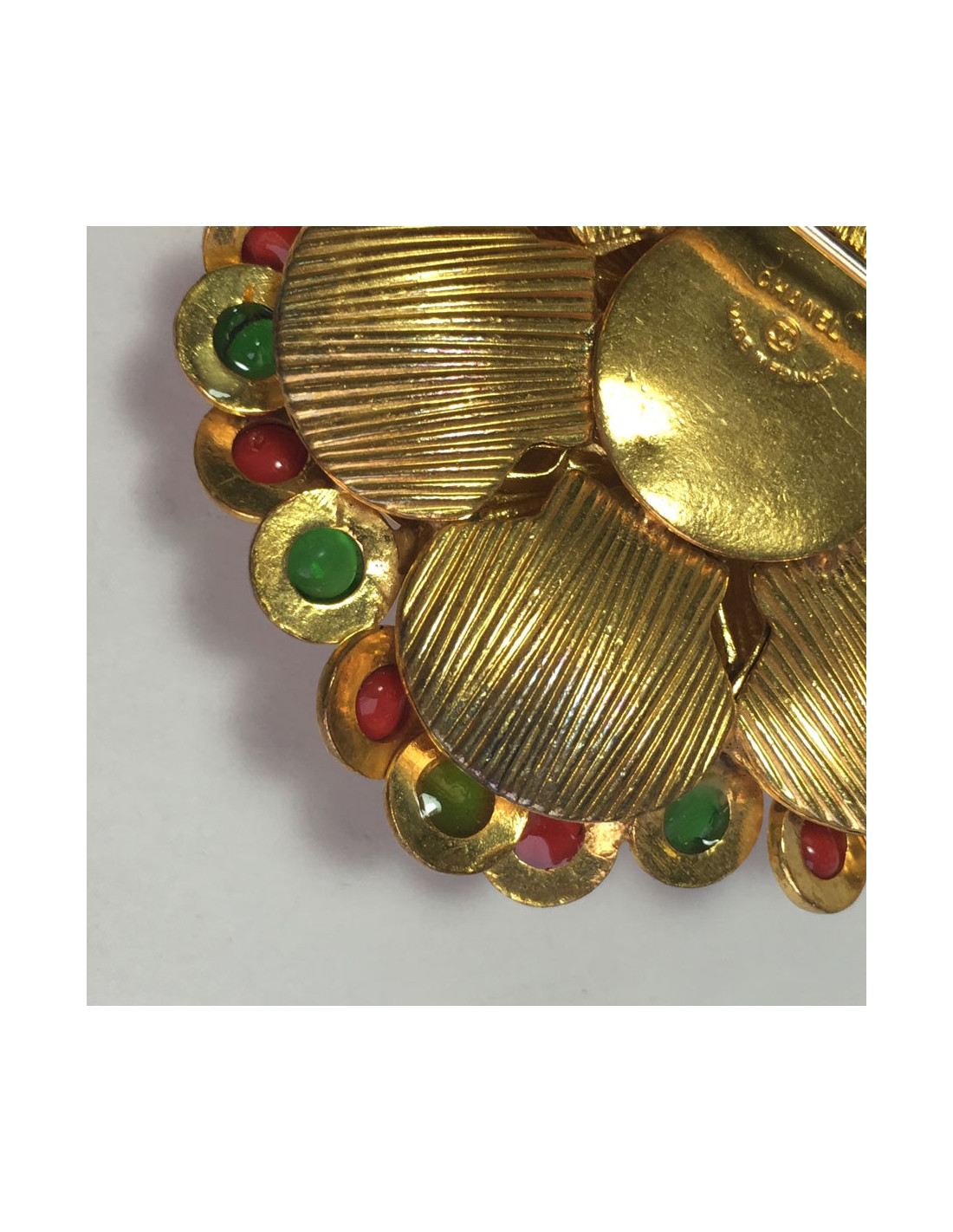 Broche CHANEL Couture en métal doré, et pâte de verre