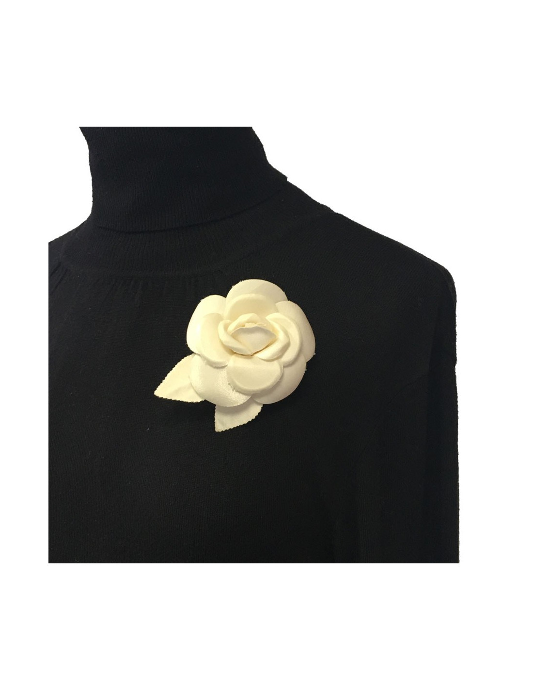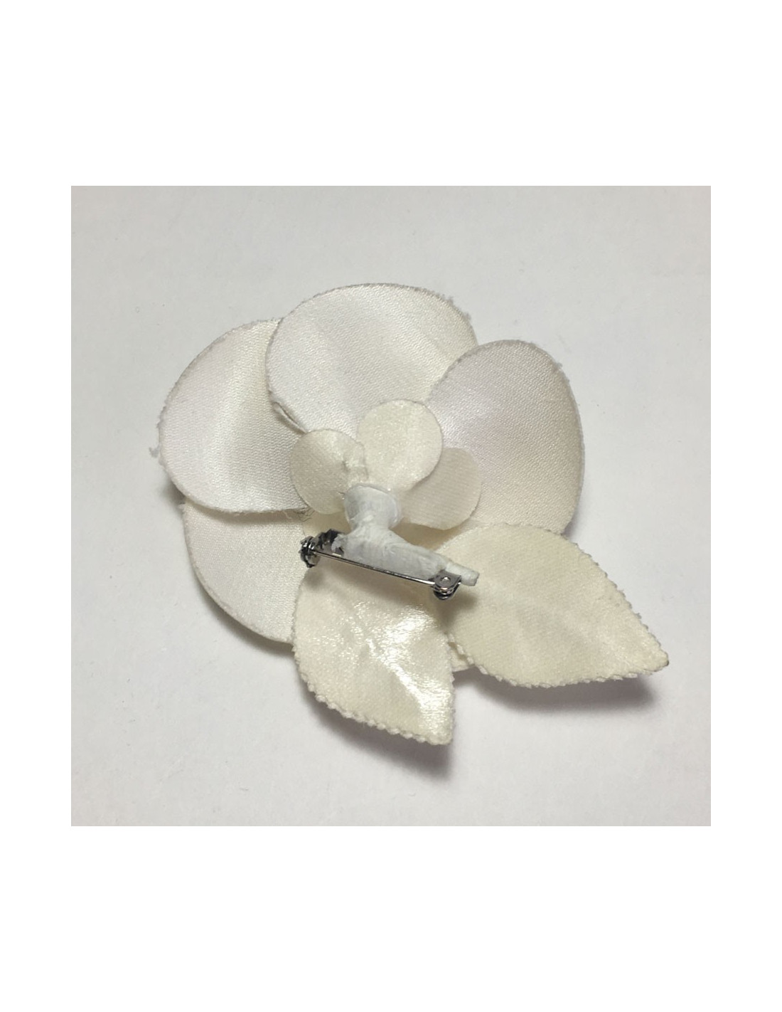 Broche Camélia CHANEL en tissu ivoire