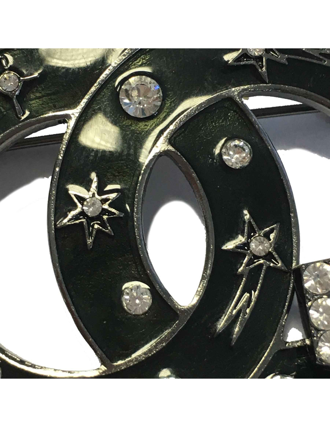 Broche CHANEL CC n° 5 émaillée noire