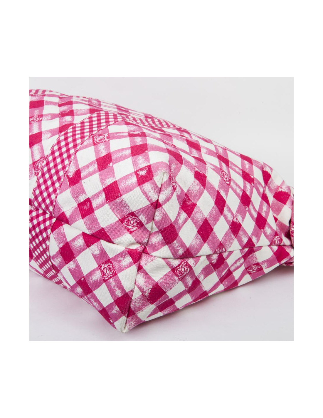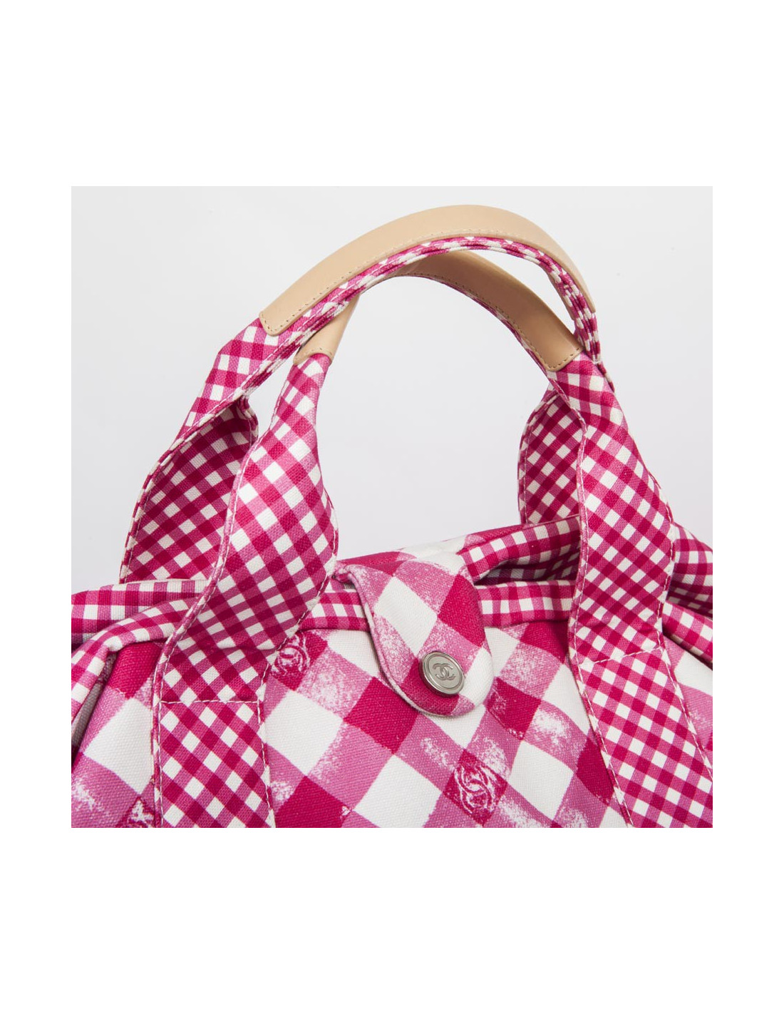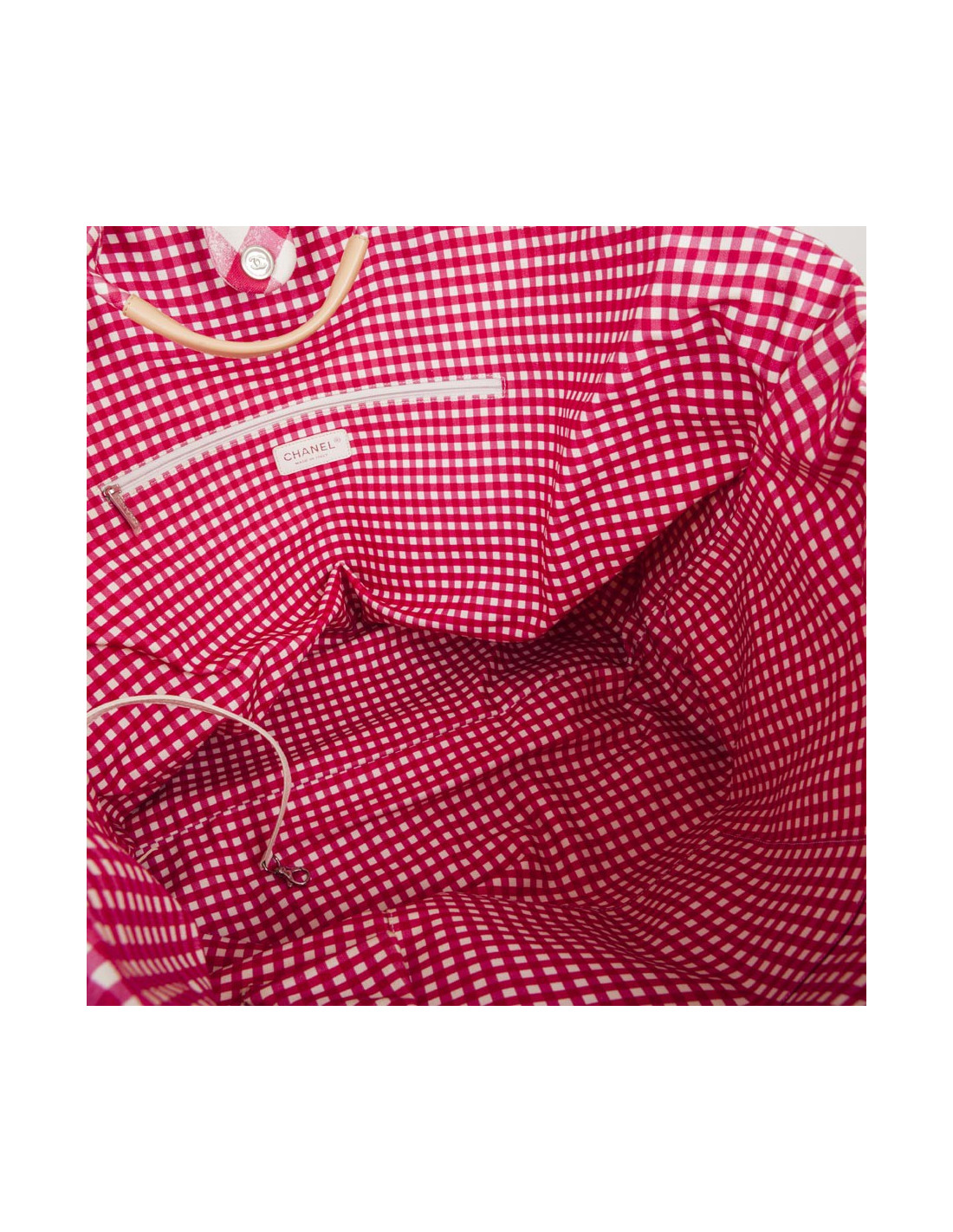 Sac CHANEL Cabas "Paris-Saint Tropez"en tissu vichy rose et blanc