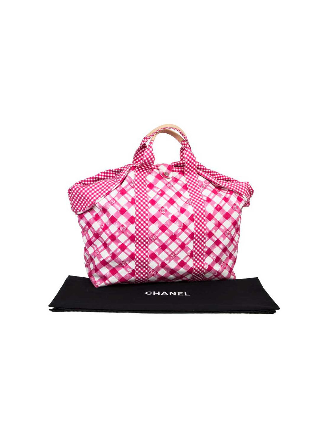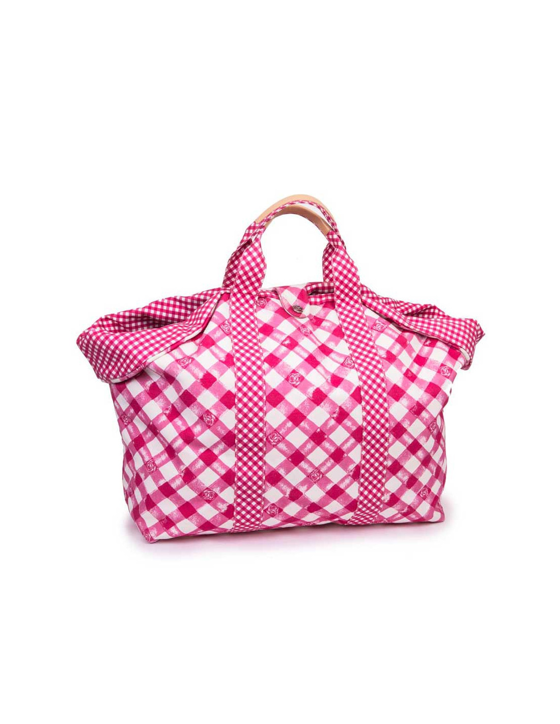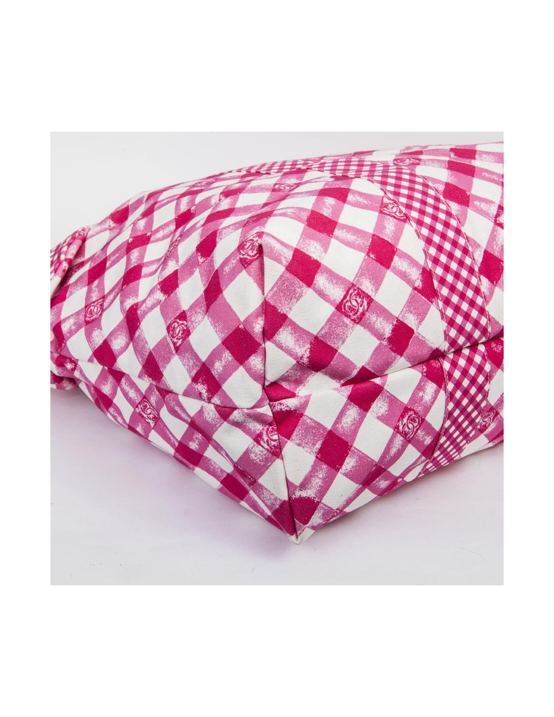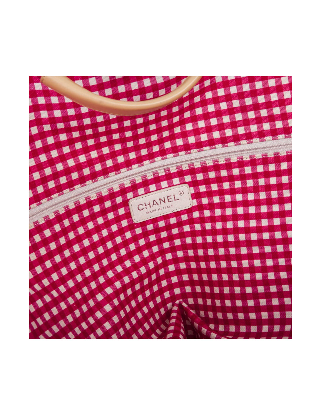 Sac CHANEL Cabas "Paris-Saint Tropez"en tissu vichy rose et blanc