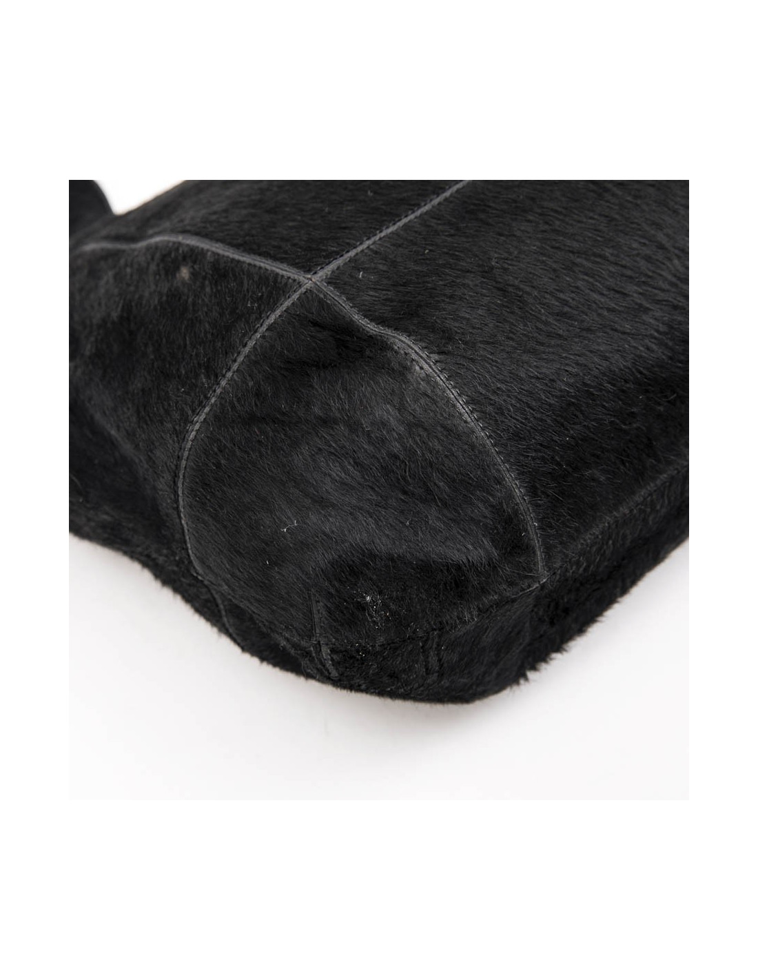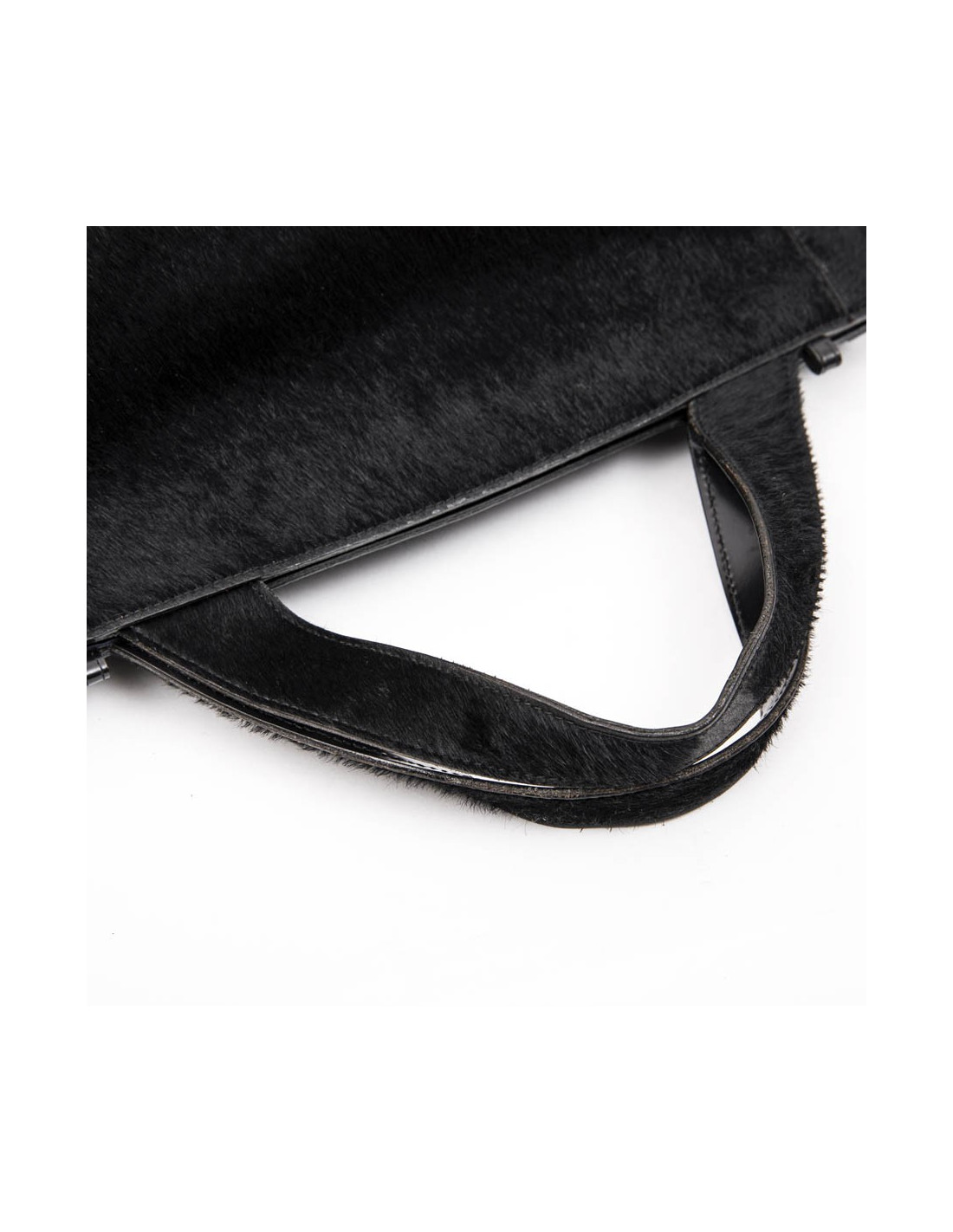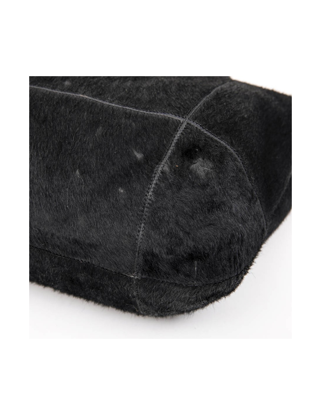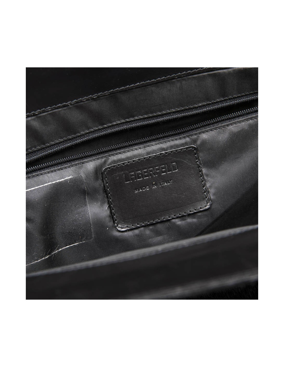 Sac Karl Lagerfeld en cuir façon poulain noir. Collection 2000. L'intérieur doublé en satin noir avec une poche zippée. Se ferme par un bouton aimanté.
