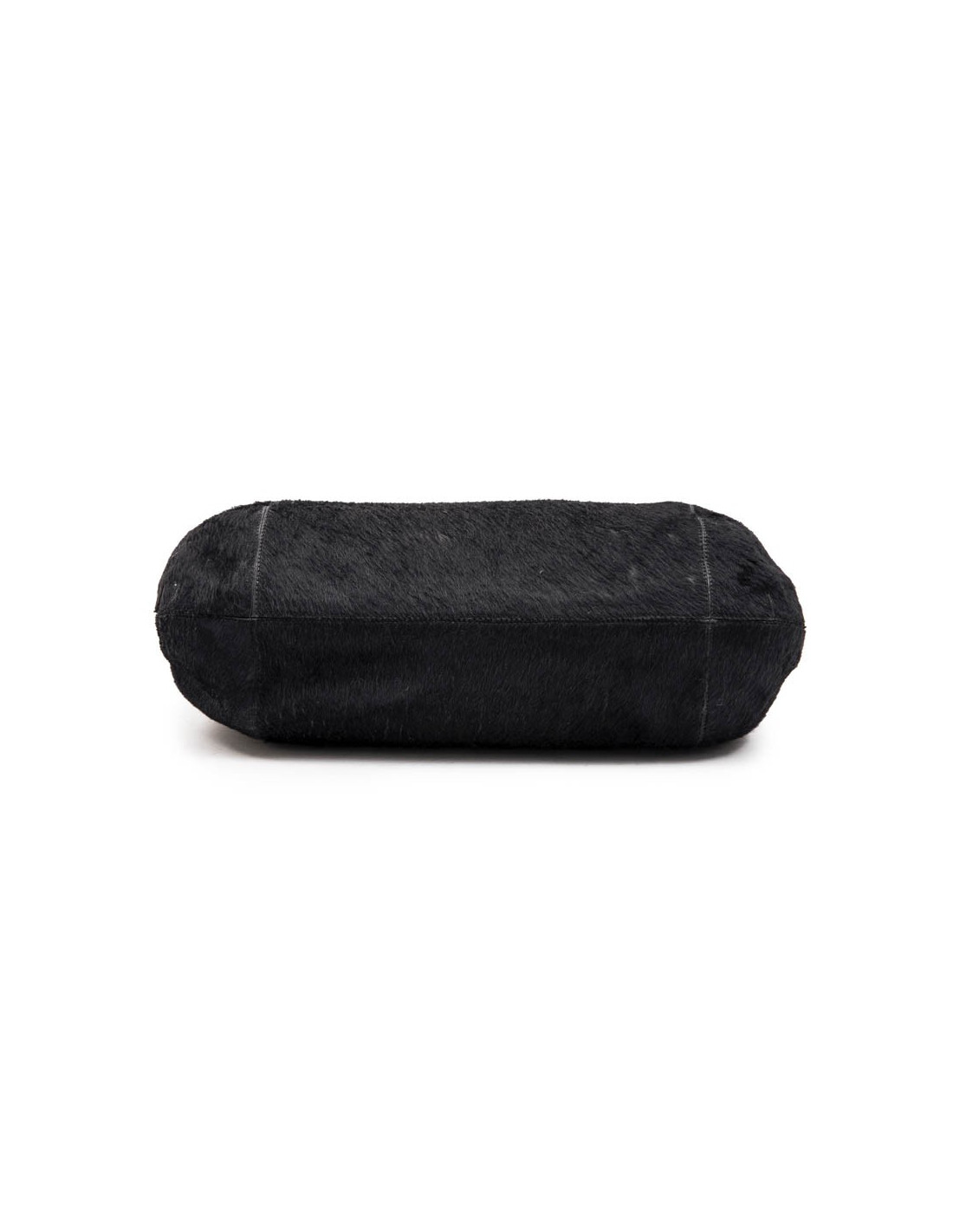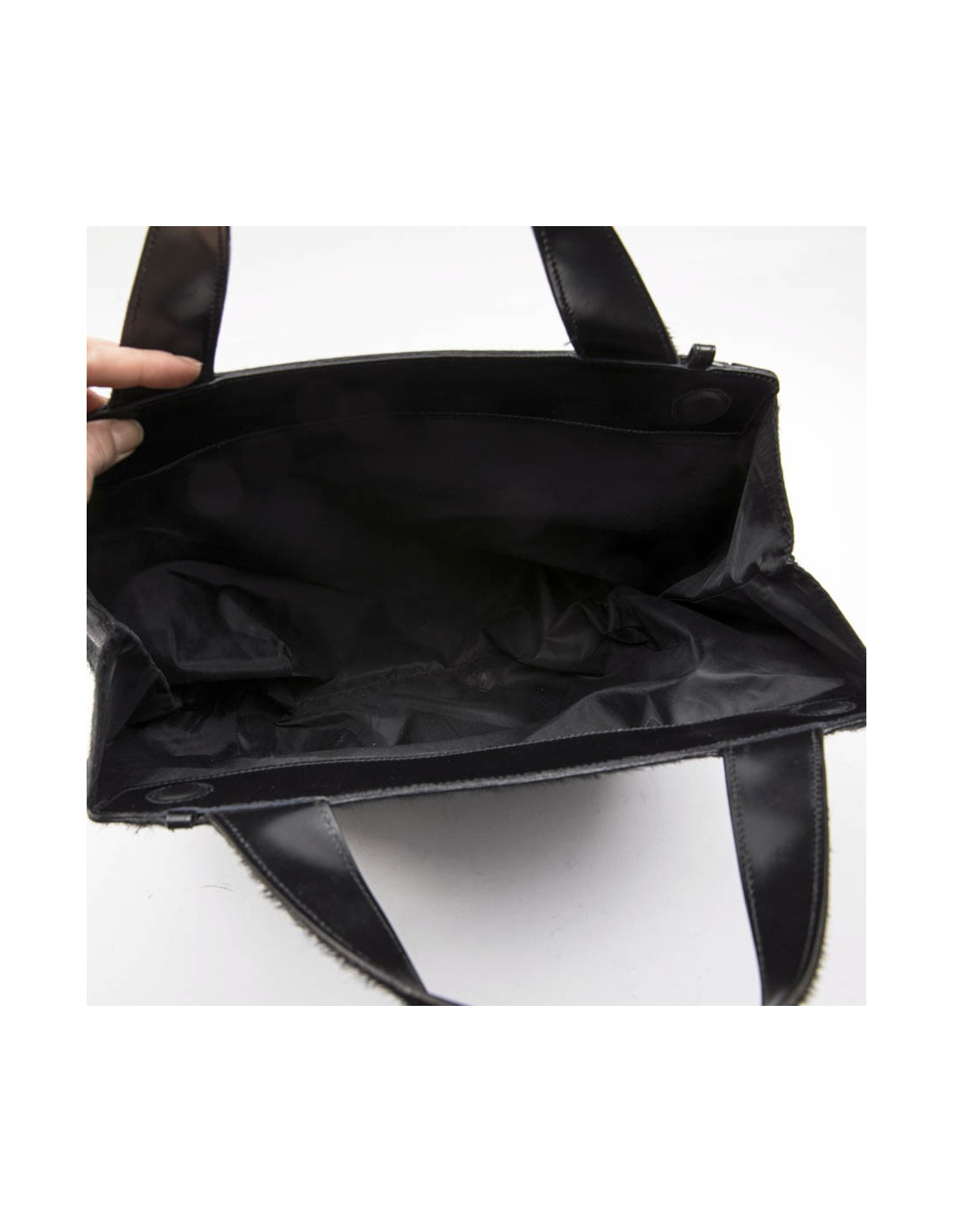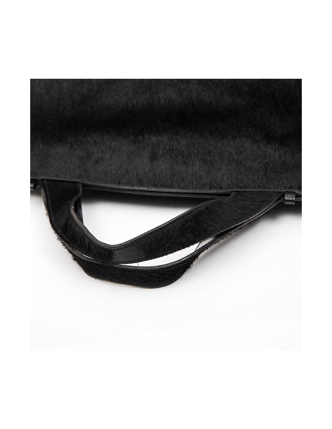 Sac Karl Lagerfeld en cuir façon poulain noir. Collection 2000. L'intérieur doublé en satin noir avec une poche zippée. Se ferme par un bouton aimanté.