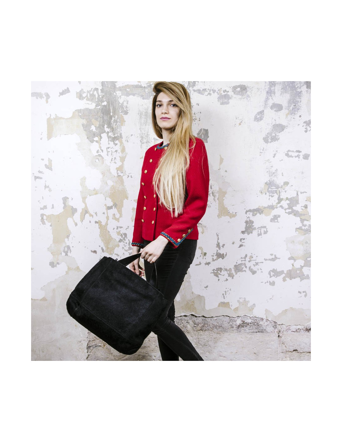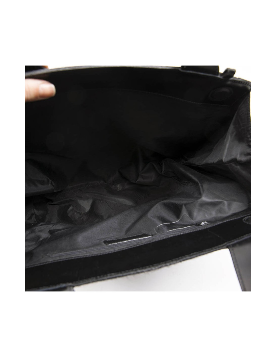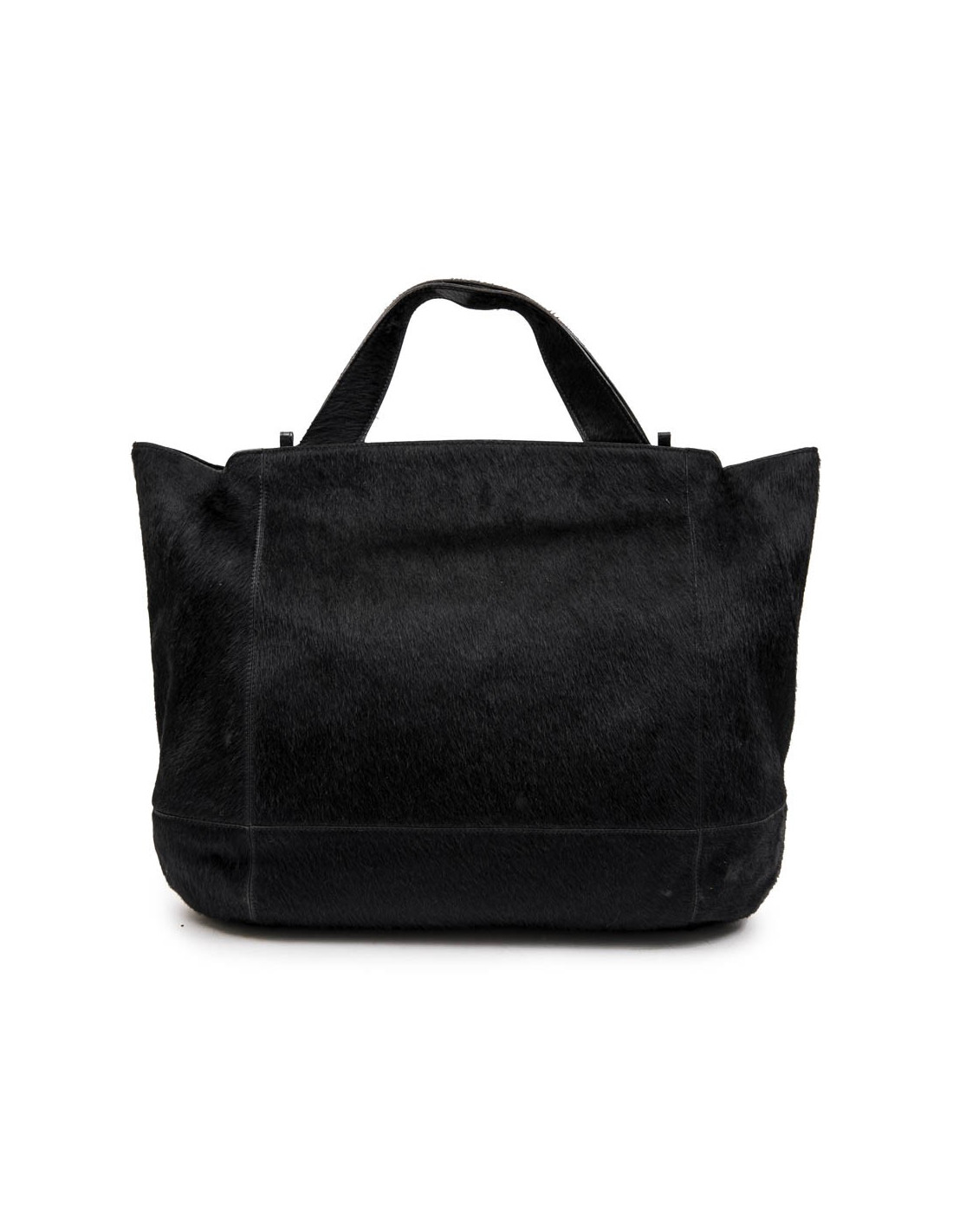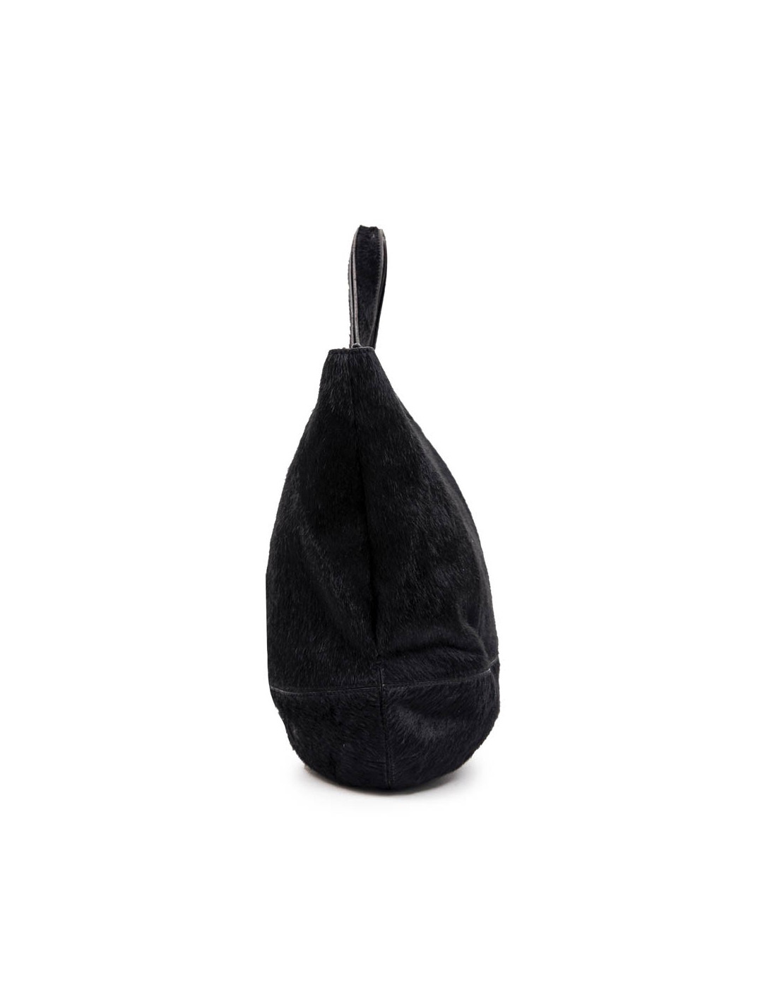 Sac Karl Lagerfeld en cuir façon poulain noir. Collection 2000. L'intérieur doublé en satin noir avec une poche zippée. Se ferme par un bouton aimanté.