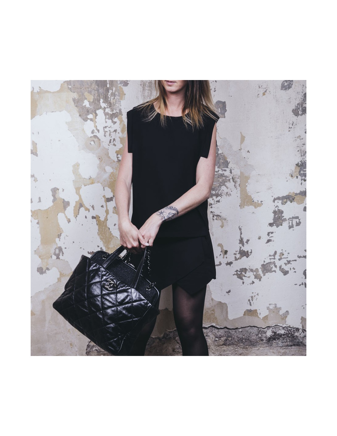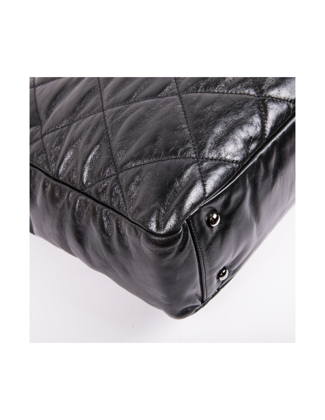 Sac CHANEL en cuir matelassé noir façon cabas - détails :